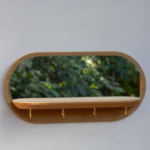 Cette étagère vous permet de passer l'entrée avec les poches et l'esprit léger avec ses fonctions de porte-clés, de tablette et de miroir :