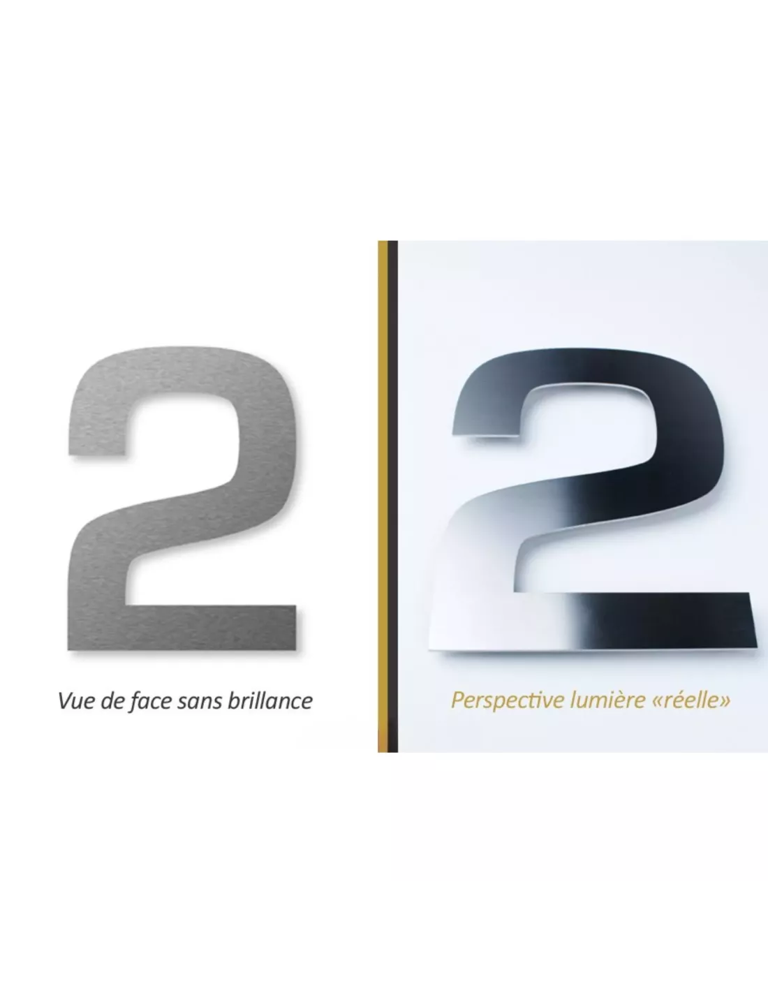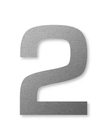 Chiffre 2 en inox mat, autocollant, hauteur 8 cm.