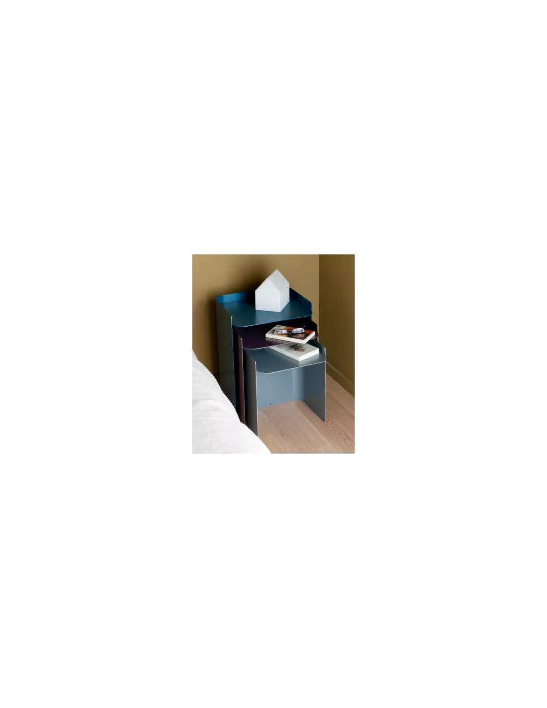 Un design doux et sobre pour souligner une évidente modularité : déployée ou empilée, la table gigogne Flor offre une multitude de possibilités de rangements et de compositions.