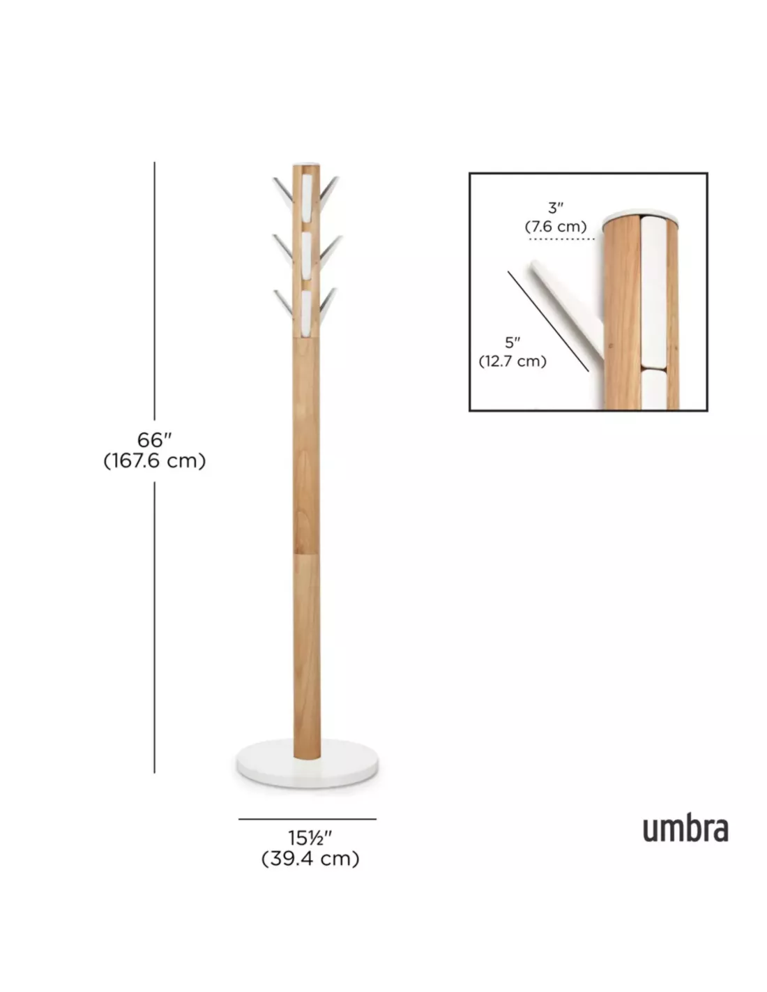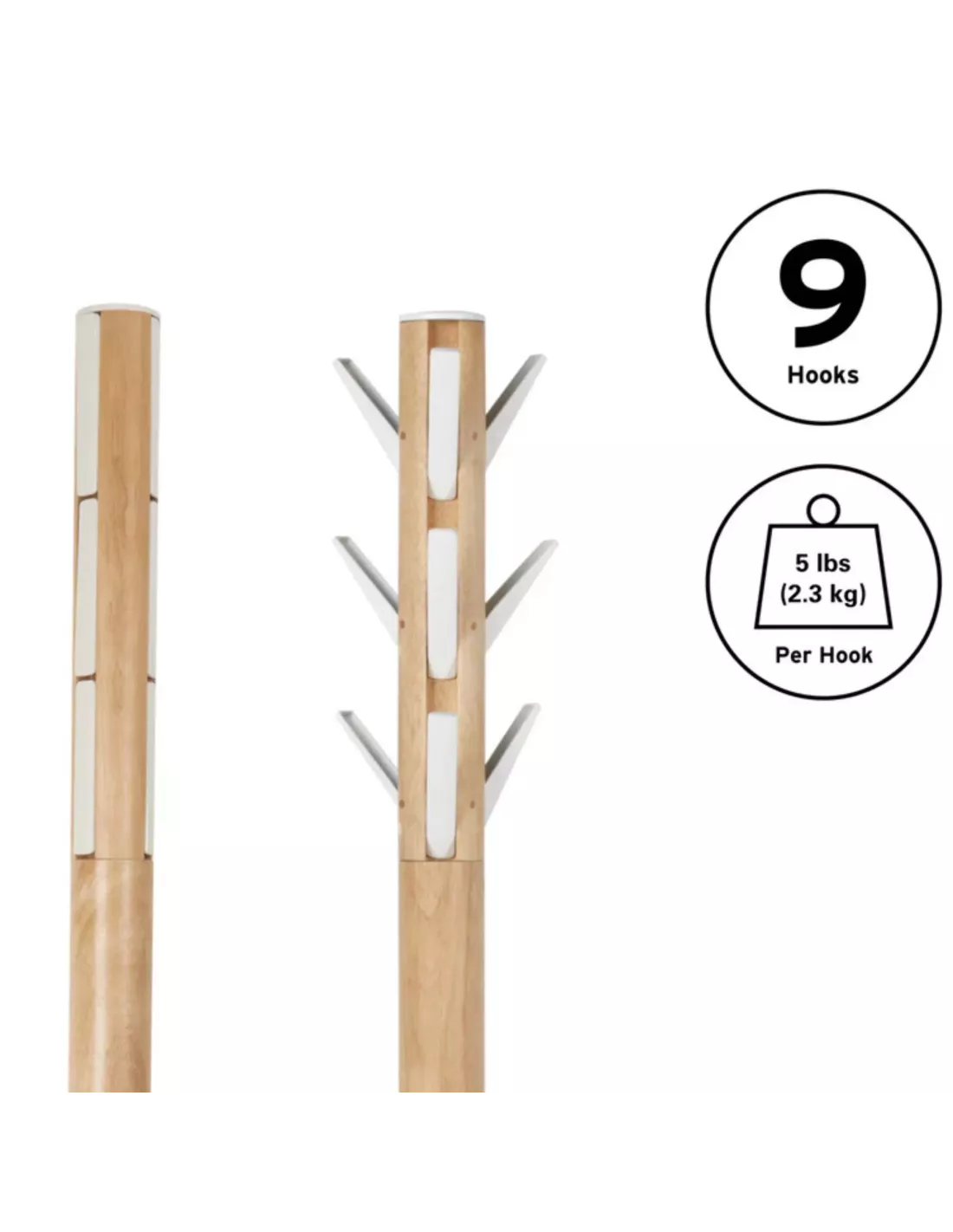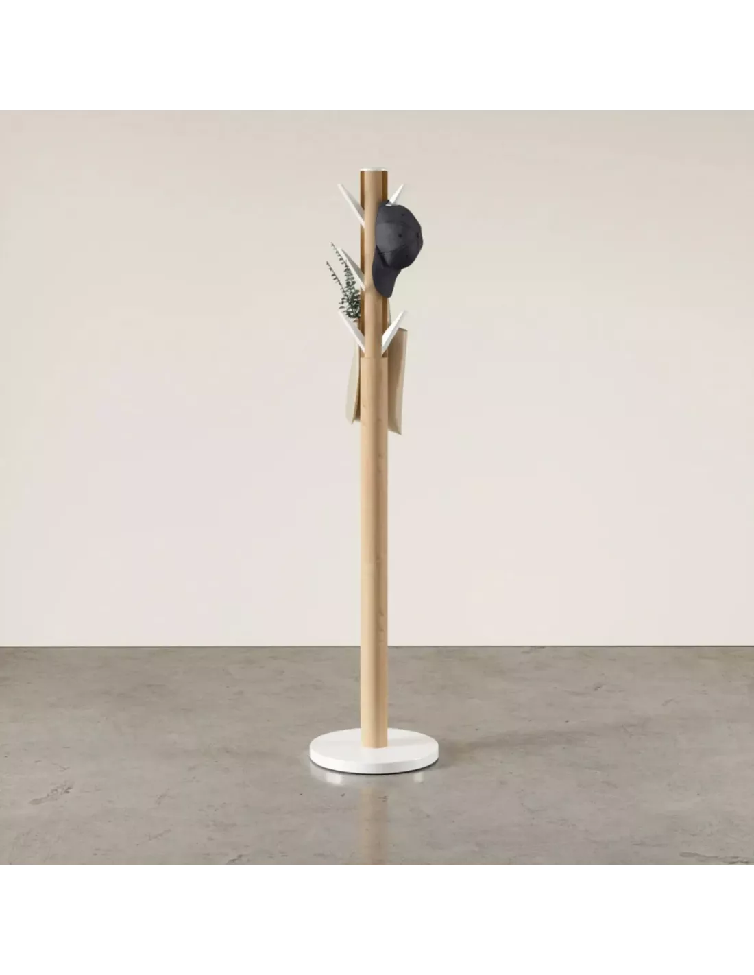 Porte manteaux sur pied - 9 crochets escamotables - Flapper Bois naturel et blanc - Umbra