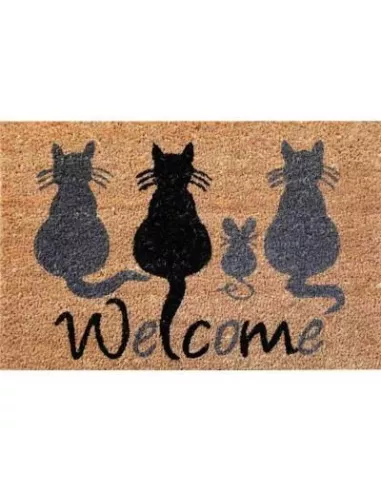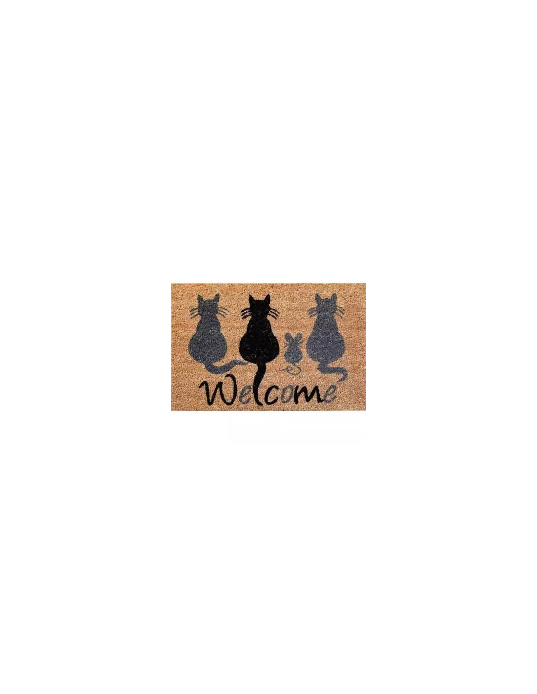 Paillasson épais avec base caoutchouc et dessus coco. Dessin de chien et texte Smile réalisés par découpe du coco.