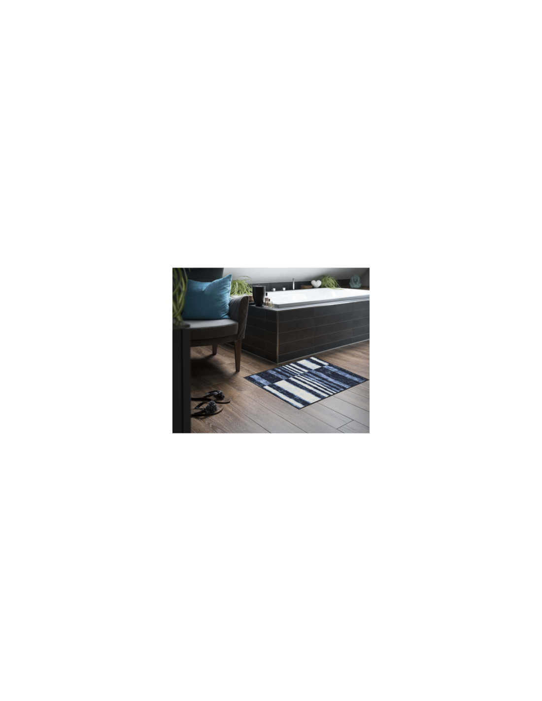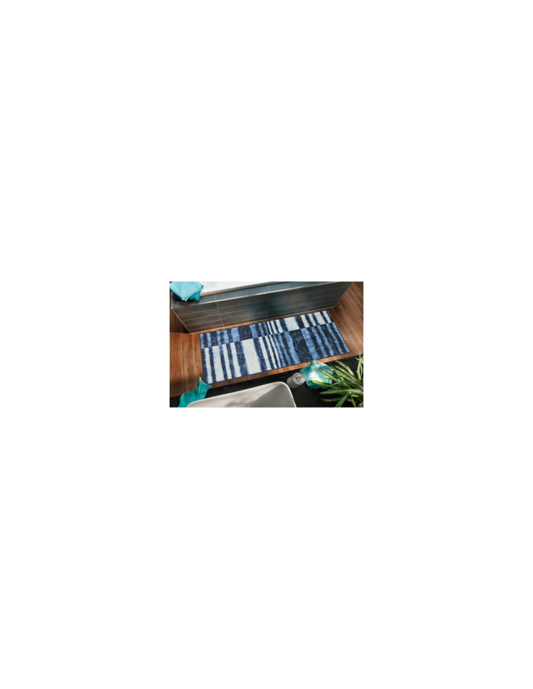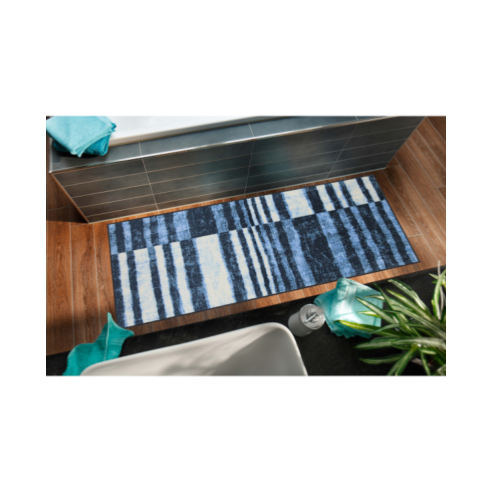 Offrez-vous le tapis Denim Stripes de Salonloewe. Une ligne moderne et sobre pour une entrée ou une salle de bains au pied de votre douche, de votre vasque ou de votre baignoire.