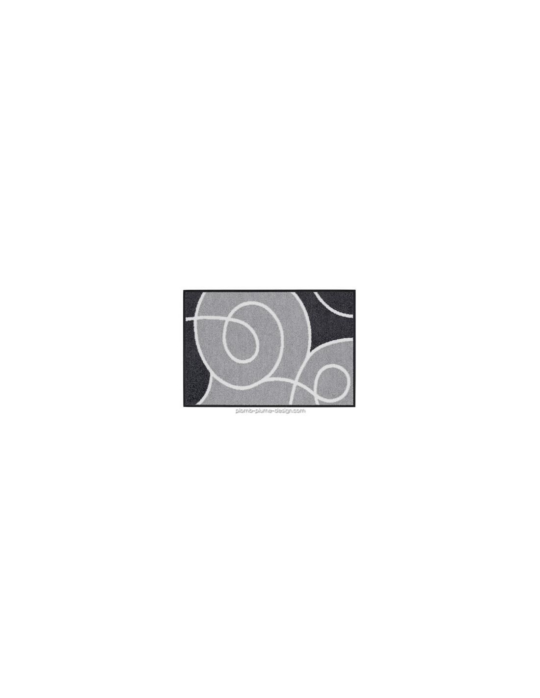 Tapis paillasson antidérapant qui arbore des motifs géométriques circulaires gris clair et gris foncé. Surface polyamide conçue pour absorber l'humidité et retenir les petites poussières sous vos chaussures. Dimensions : 75cm x 50cm