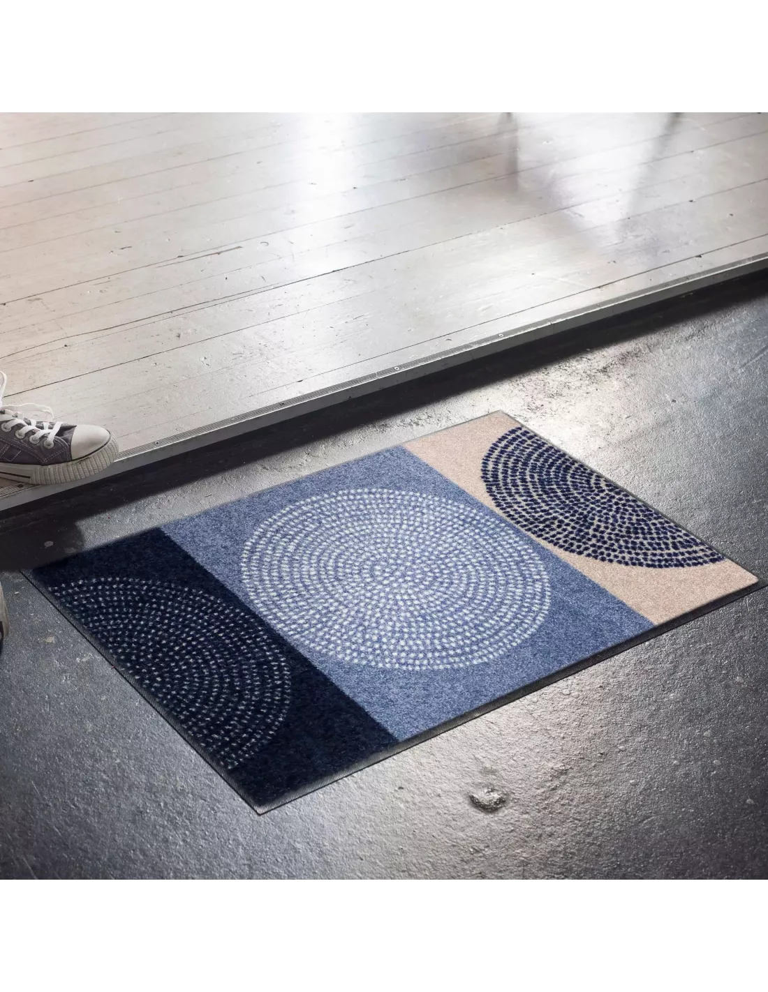 Nous vous proposons le tapis d'entrée design Nestor décliné dans sa version Denim.