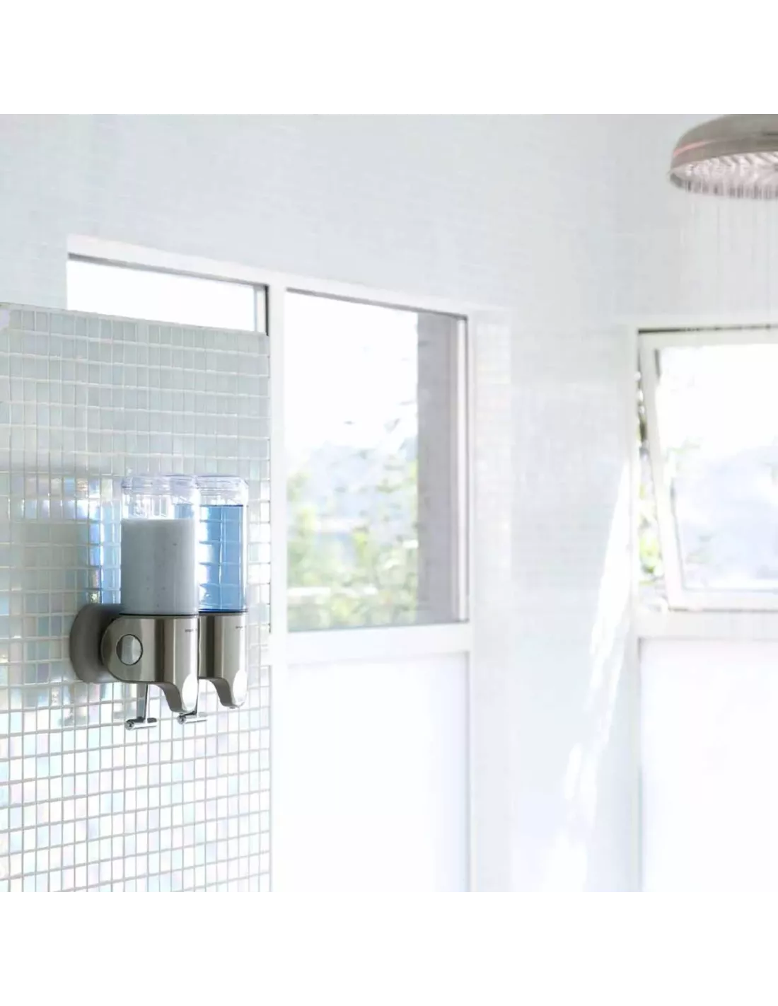 Apportez élégance et praticité à votre salle de bain avec le distributeur de savon mural double de Simplehuman, idéal pour organiser savon, shampooing et après-shampooing en un seul lieu.