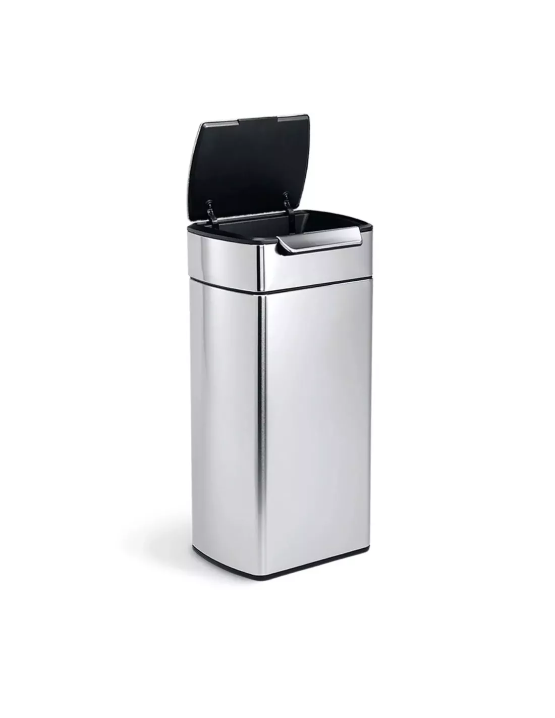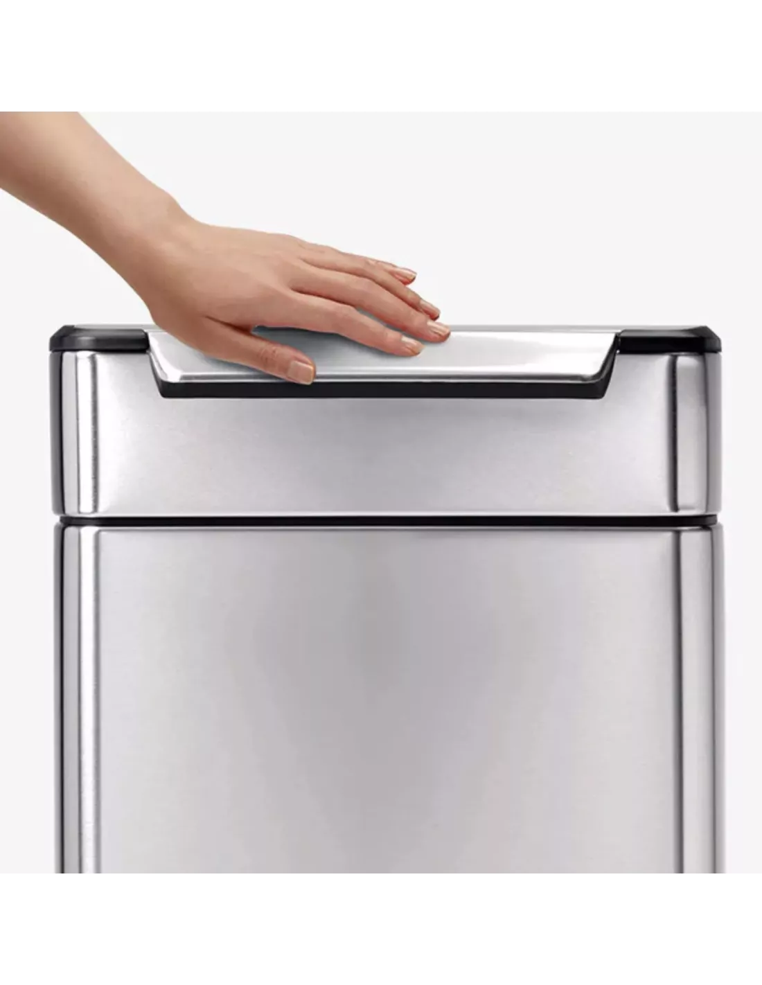 Ouverture intuitive par touch-bar, un coup de hanche, de genou ou une pression avec le coude suffit pour ouvrir la poubelle, même les mains pleines.