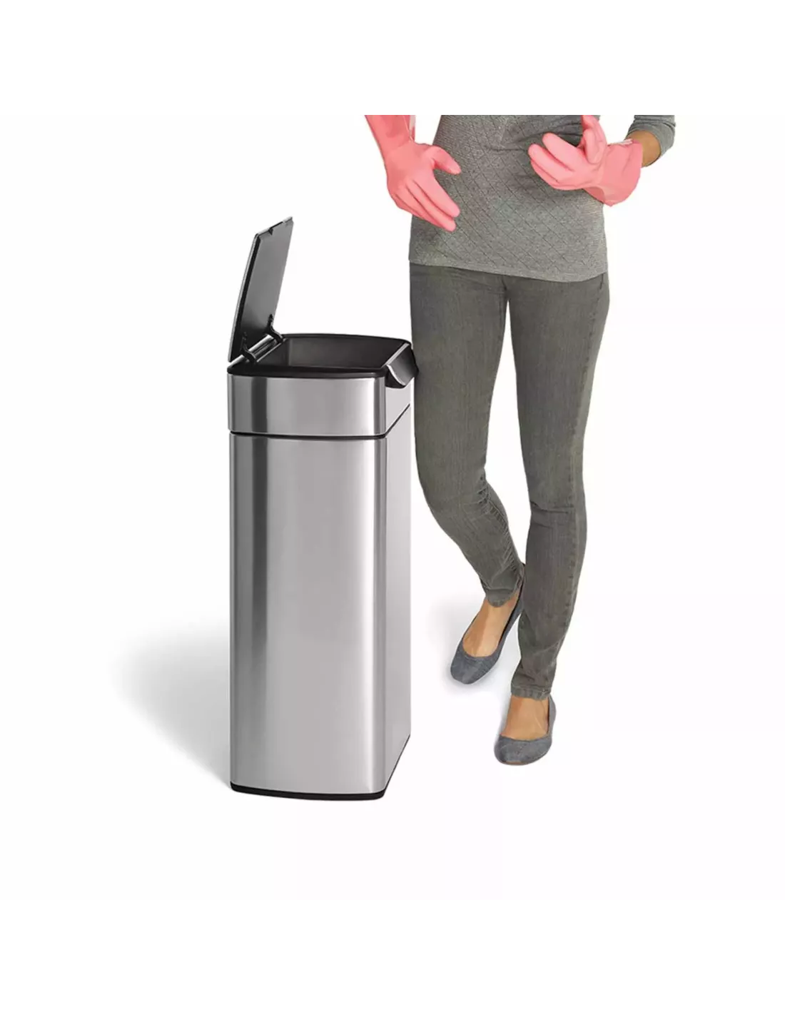 Découvrez la poubelle touch-bar Simplehuman, conçue pour une ouverture facile et hygiénique, idéale pour les cuisines modernes et les usages prolongés.