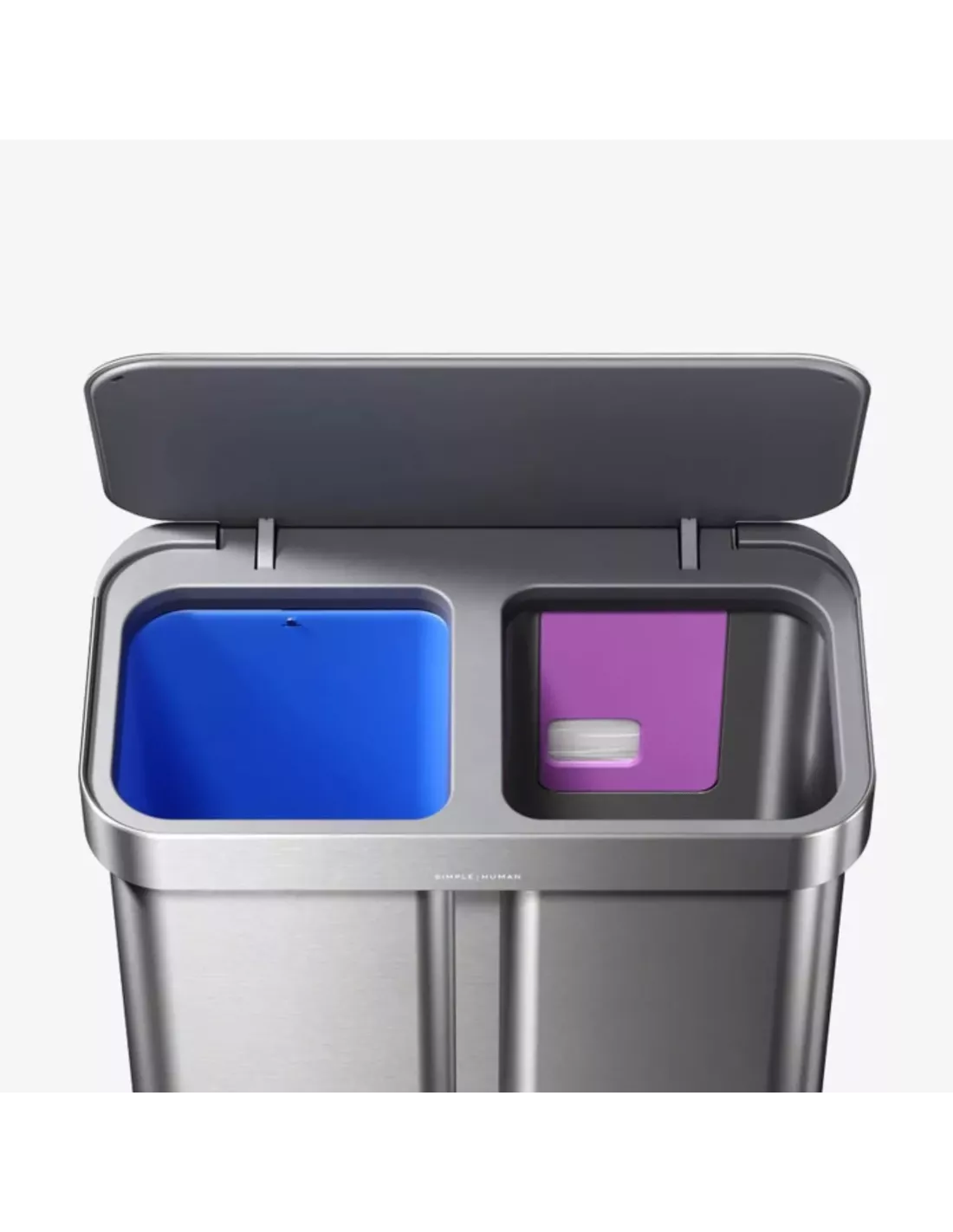 La poubelle à pédale Recycler 58L de simplehuman est idéale pour gérer efficacement déchets et recyclables dans les cuisines actives, tout en conservant un style moderne et épuré.