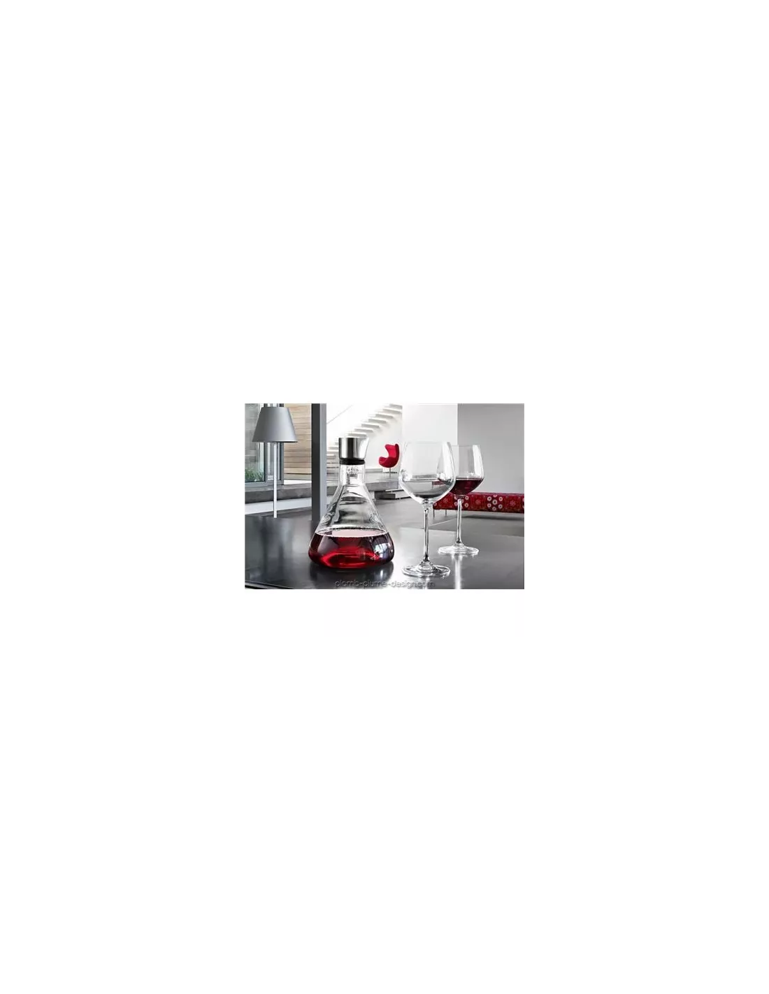 Carafe à vin en verre avec bouchon droit filtreur en inox et silicone. Le vin s'aère et est filtré des impuretés lorsque vous le versez dans la carafe.