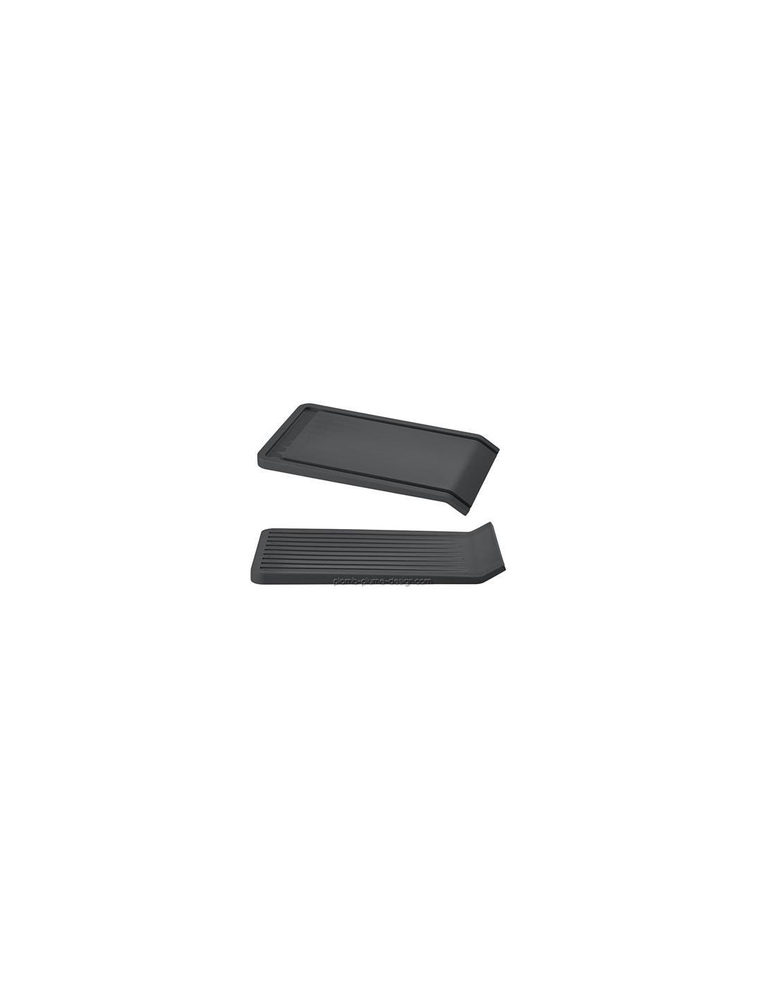 Pour cette planche à découper originale, la première face est plane avec une rigole découpée sur 3 côtés. Grâce à la structure incurvée, si vous l'utilisez en mode découpe / service, le jus par exemple de la viande, s'écoulera dans la rigole. Si vous l'utilisez en mode préparation, le jus s'évacuera également par les rigoles et surtout l'inclinaison permettra une évacuation facilitée des "déchets" dans l'évier.