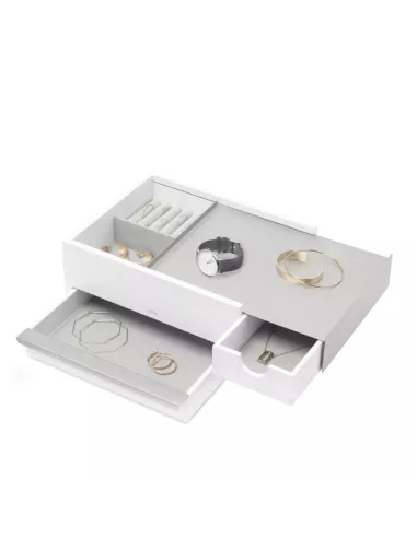 Umbra boite à bijoux grand format en bois Blanc et métal et gris Nickel