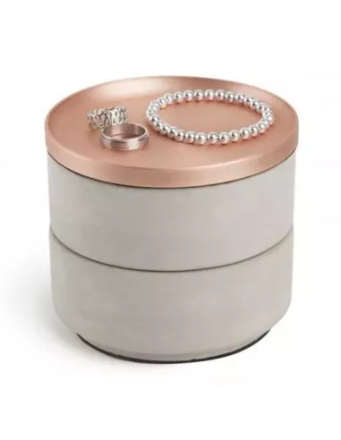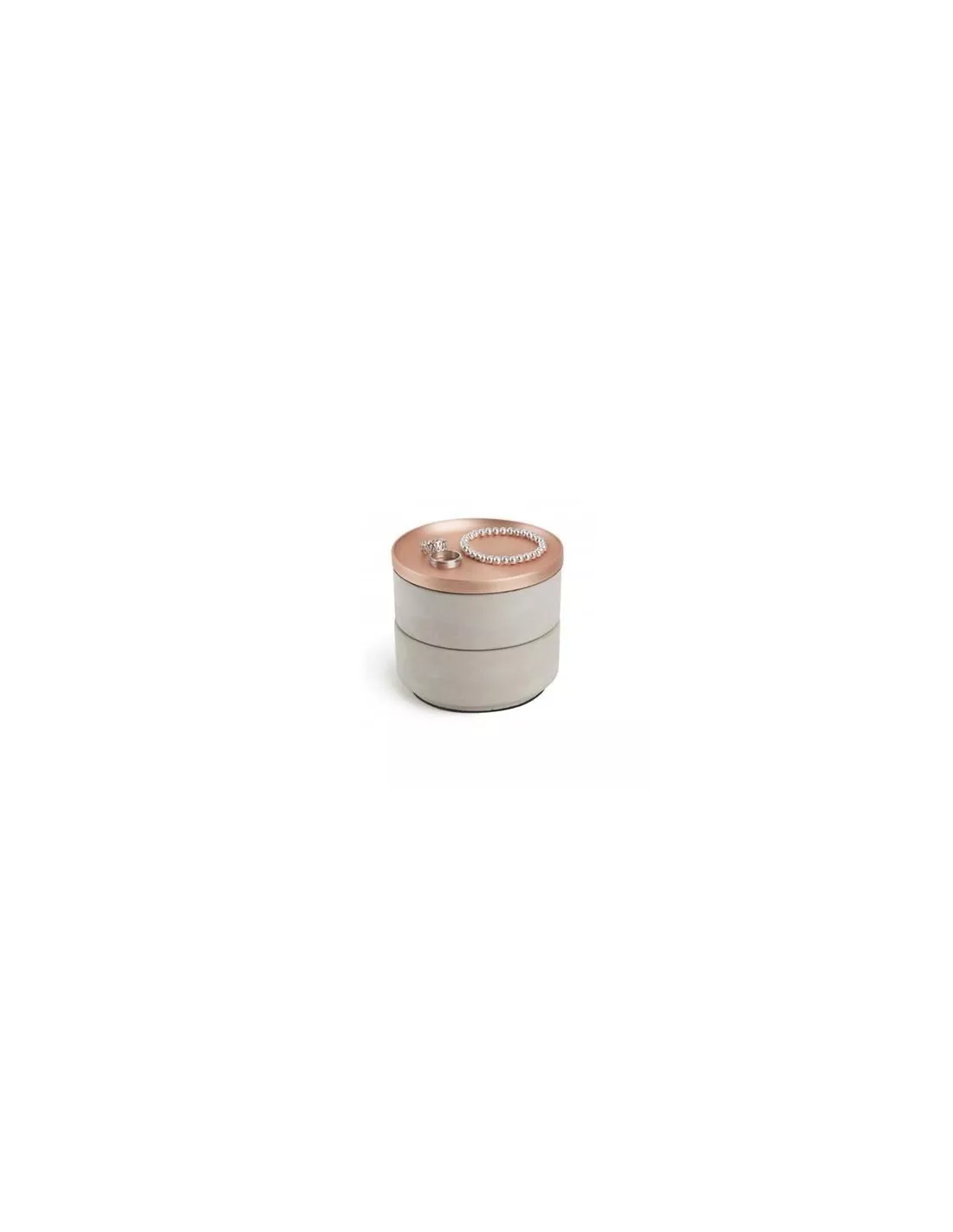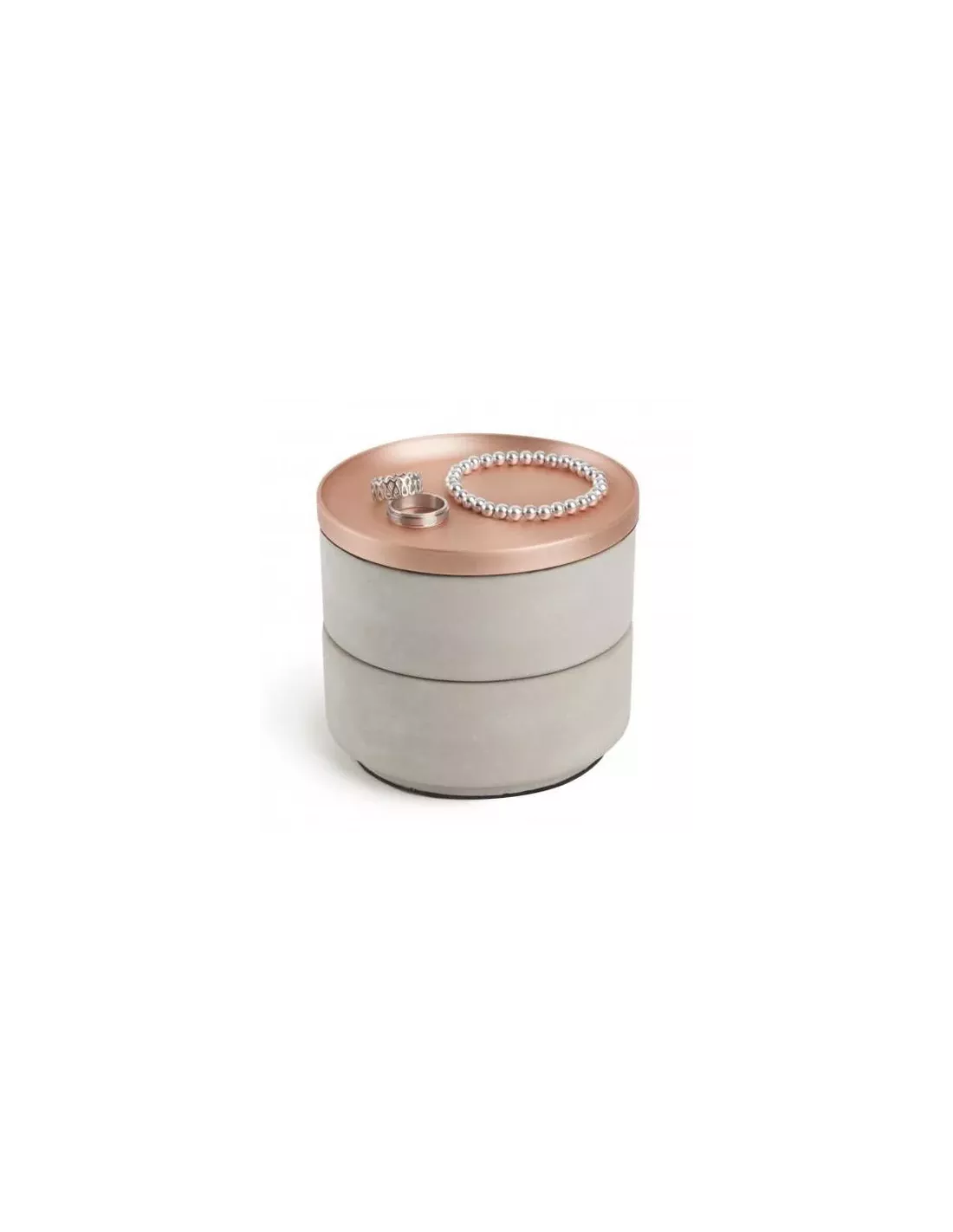 Boîte à bijoux Tesora en résine de béton et métal cuivré.