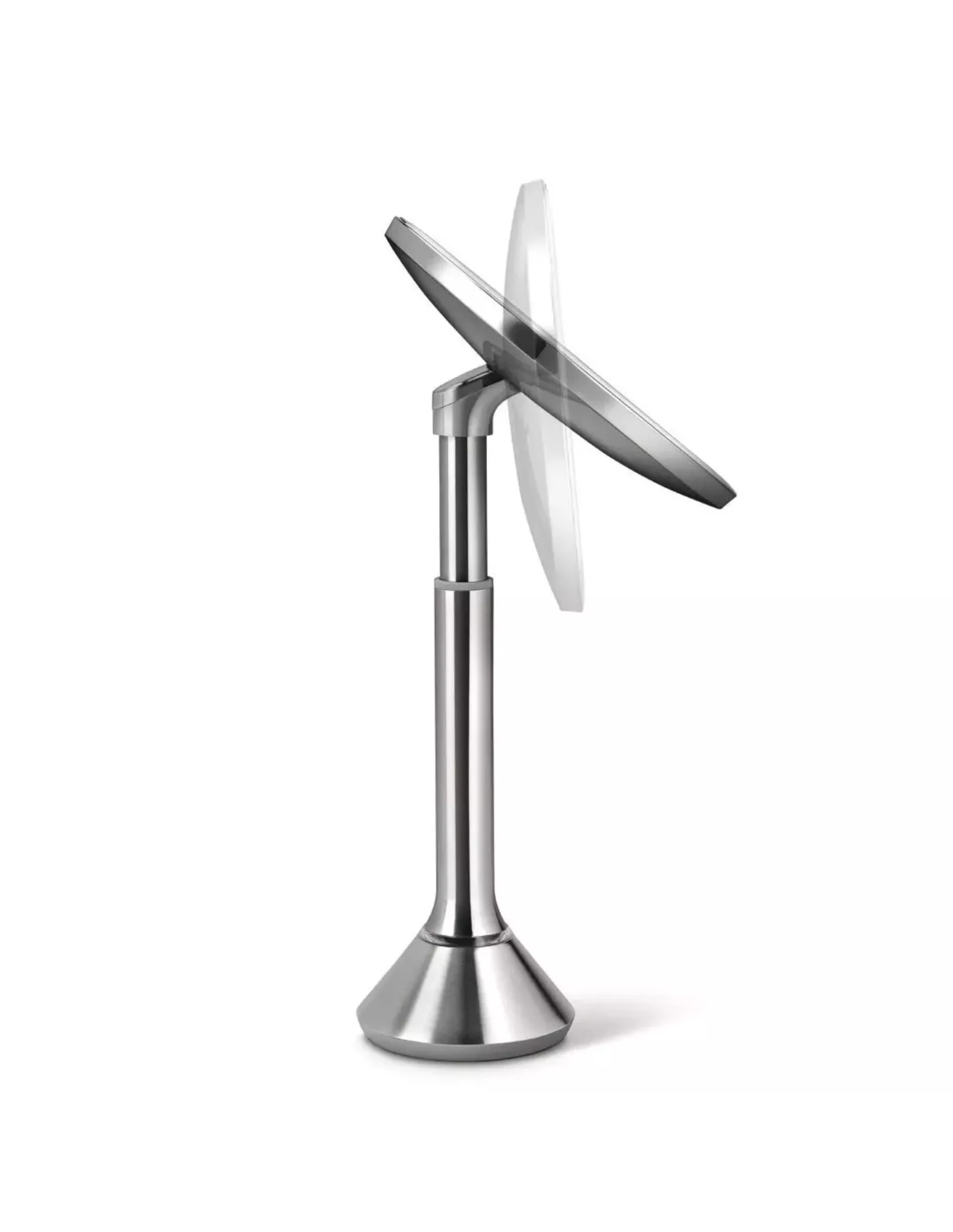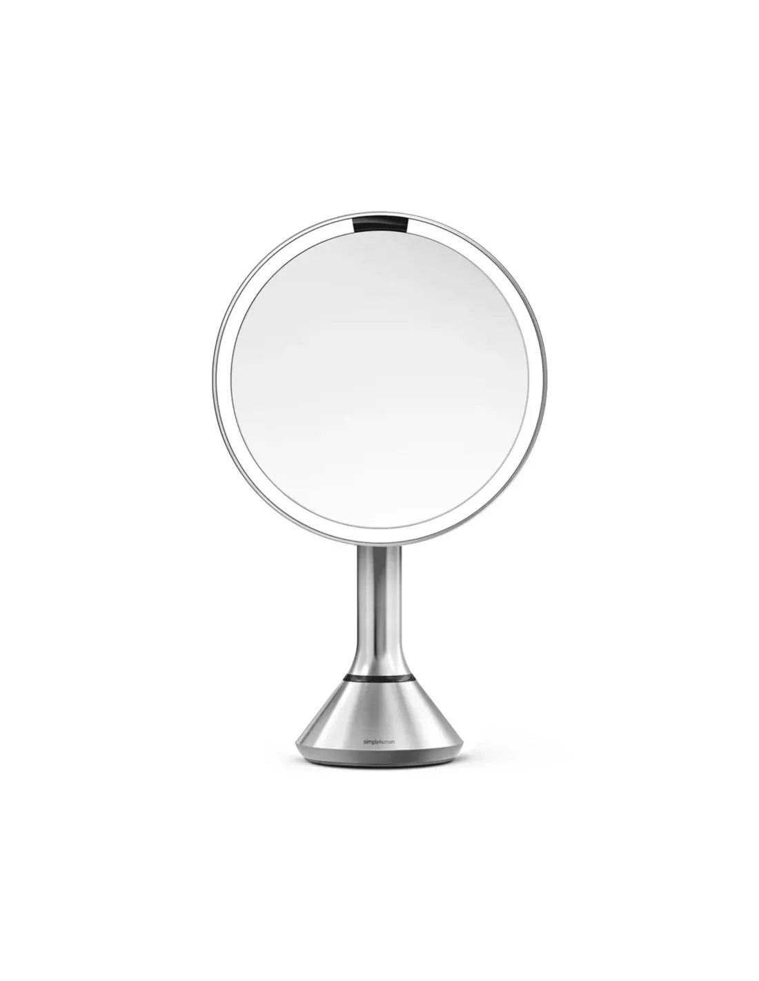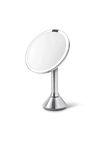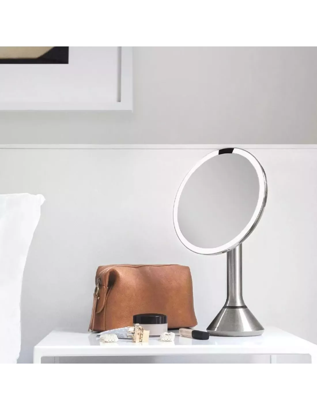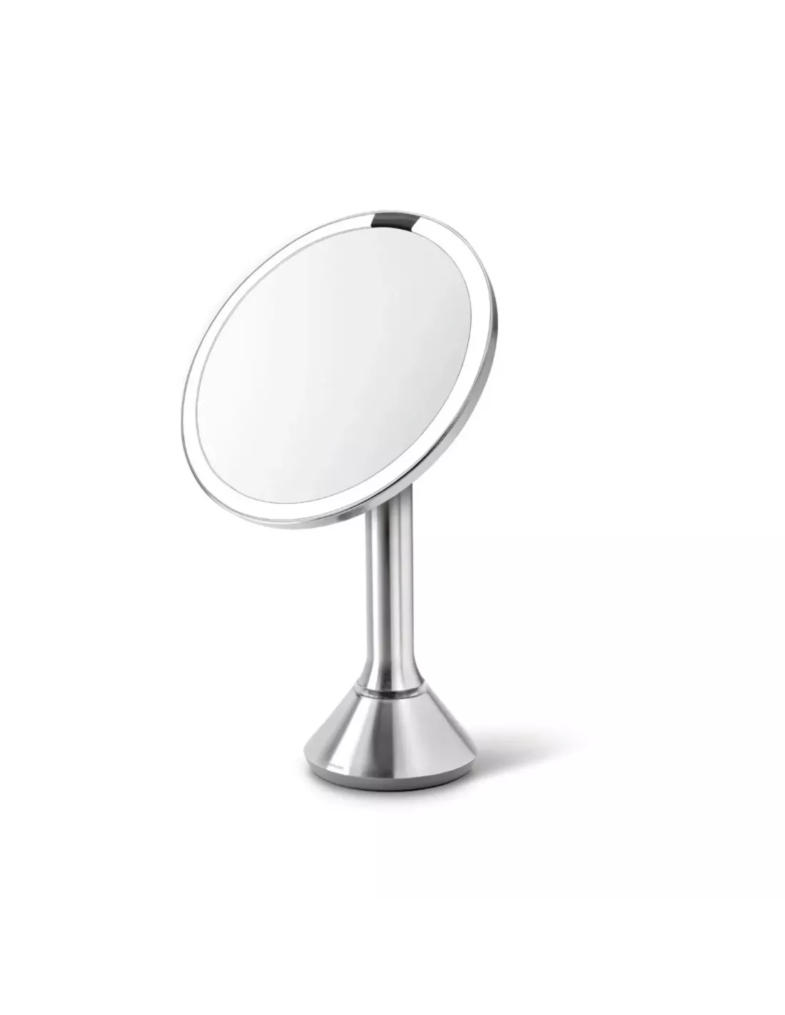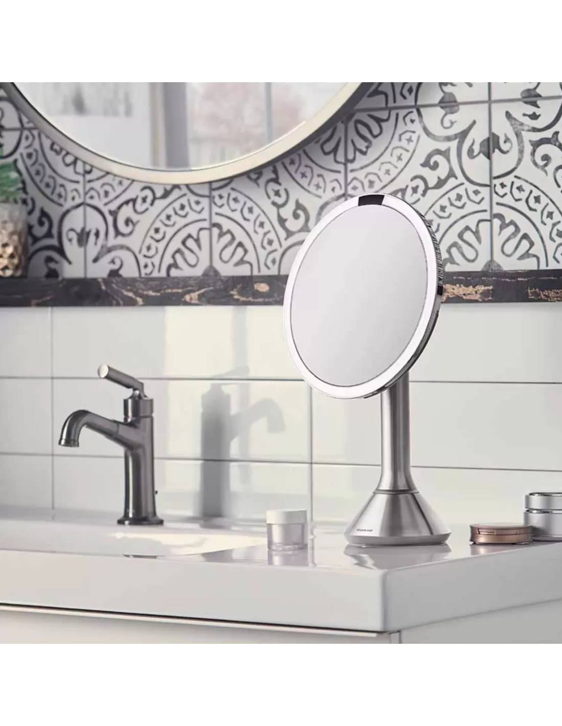 Miroir Grossissant Lumineux LED à capteur très haut de gamme de la marque Simplehuman, présenté ici dans sa version sur pied.