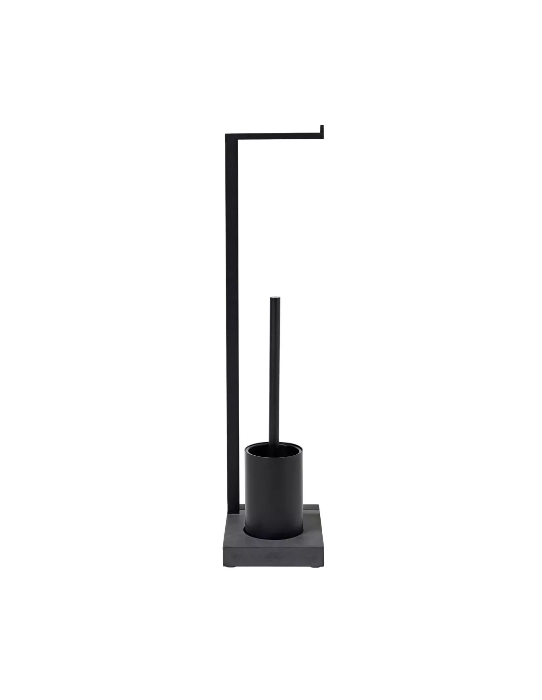En plus d'offrir un porte papier toilette design qu'est cette tige en acier poudré noire, fixée à un piètement en PolyStone, il propose une balayette wc qui s'emboite dans ce même piètement (cette dernière n'y est pas fixée pour un entretien facilité).