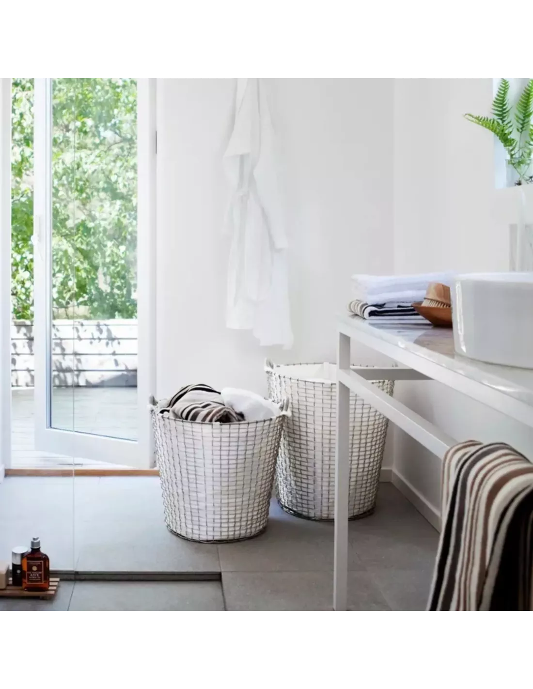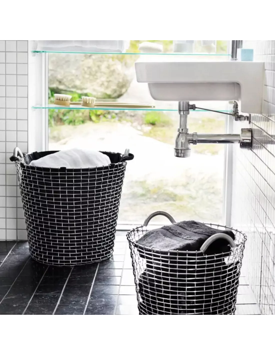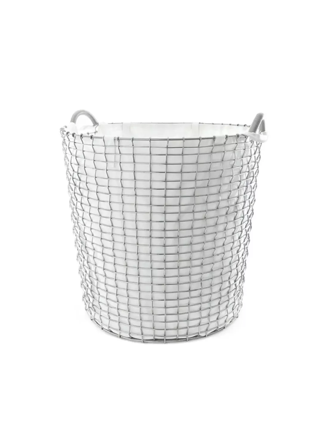 Cette corbeille à linge sale de la société suédoise Korbo est réalisée en acier galvanisé (plus terne que l'acier inoxydable).