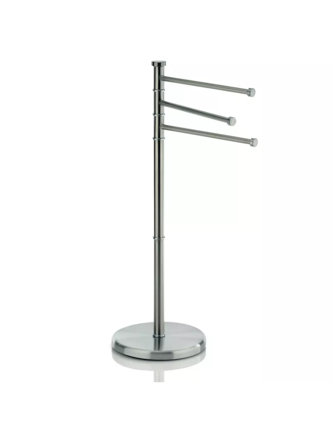 Le porte-serviettes Swing de Kela est un sèche-serviettes sur pied élégant en acier inoxydable, doté de trois barres pivotantes indépendantes qui s'ajustent selon les besoins pour un séchage optimal des serviettes.