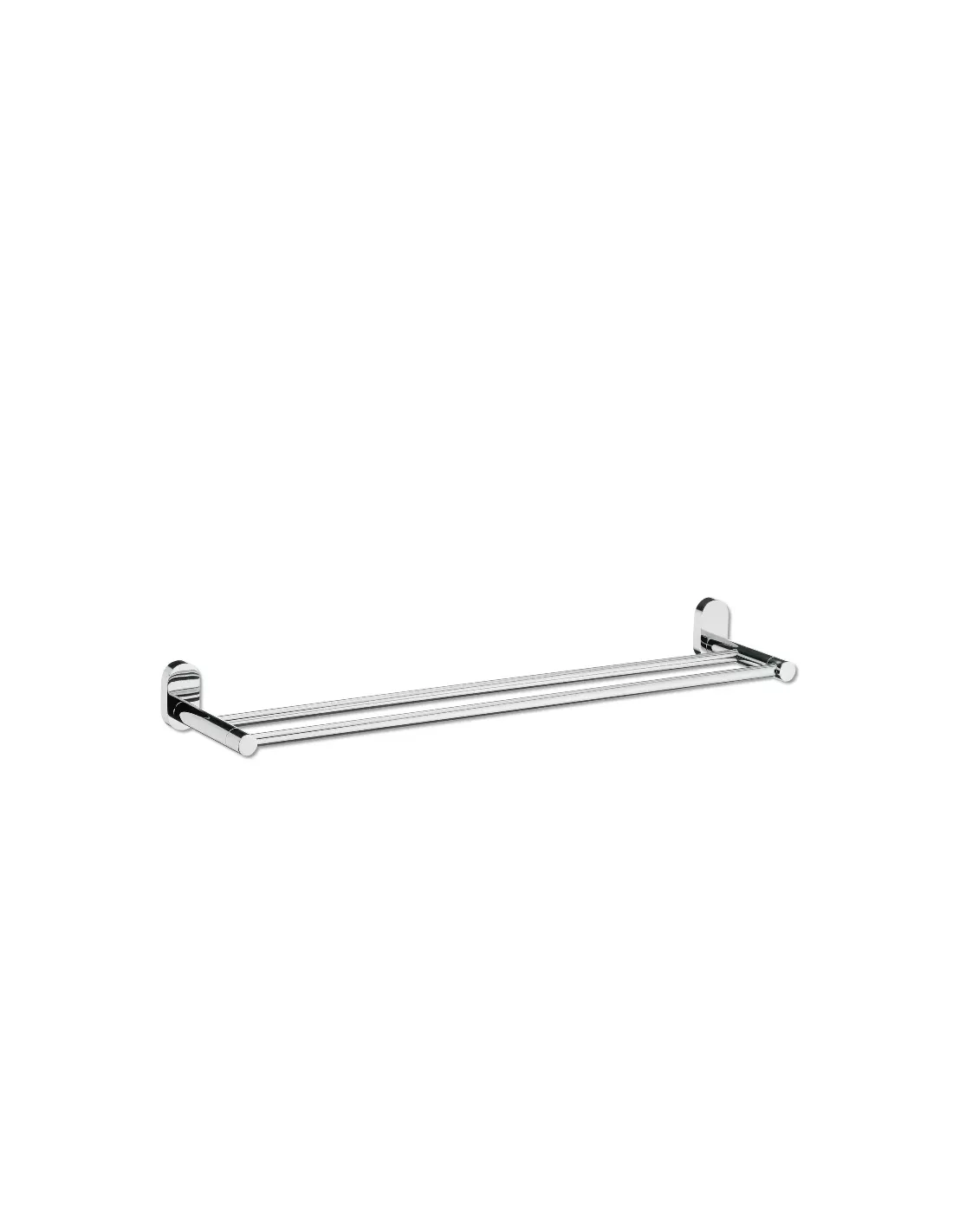 Porte-serviette mural double barre en inox 18/10 brillant de 60cm de long et aux accroches ovales. A visser ou coller !