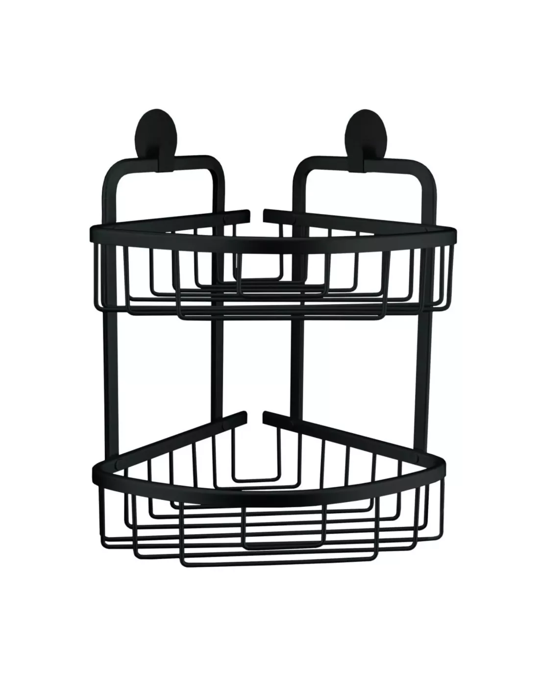 Optimisez l’organisation de votre douche avec le panier double d’angle mural Rocco Noir de Kleine Wolke.