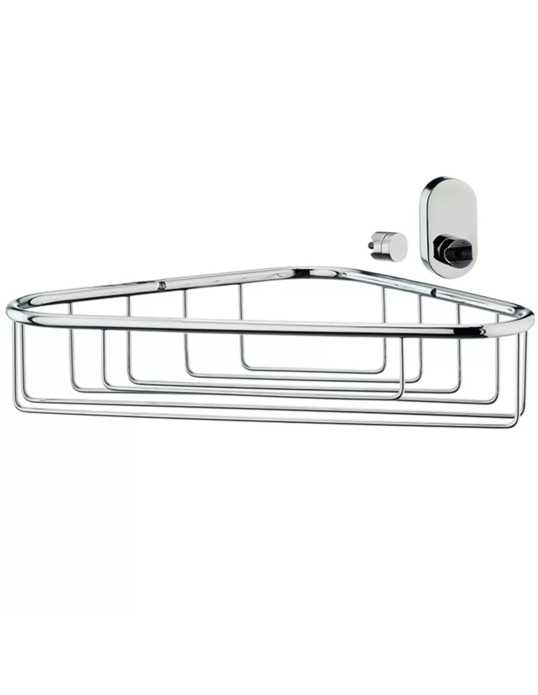 Panier d'angle ou Porte Savon de la gamme Lucido en inox 18/10. Montage à droite.