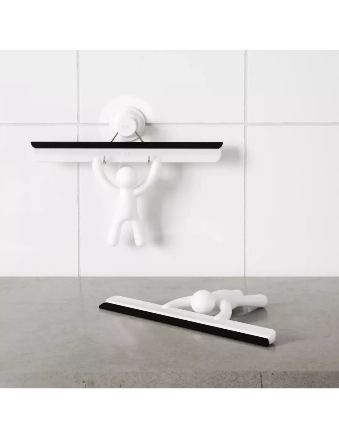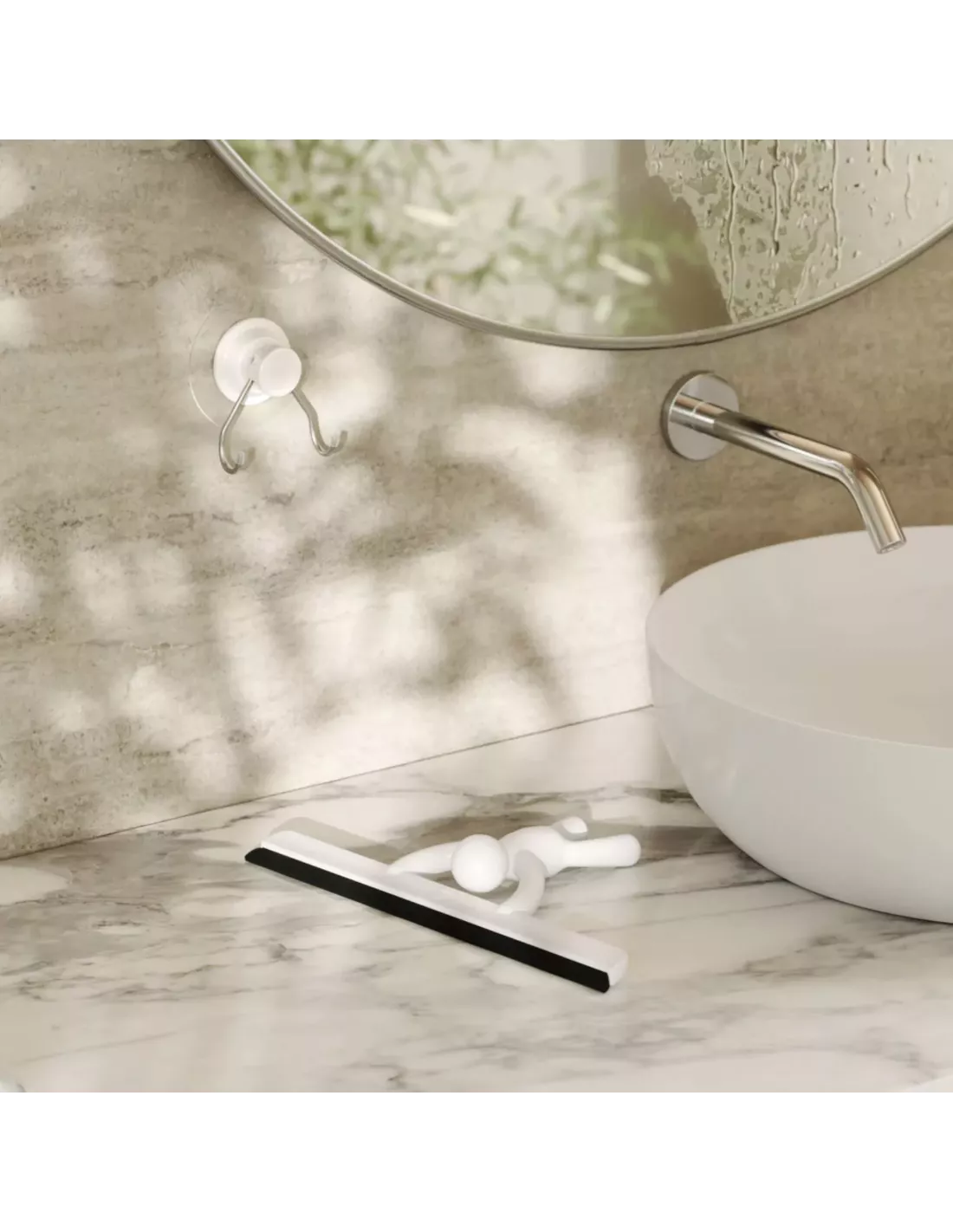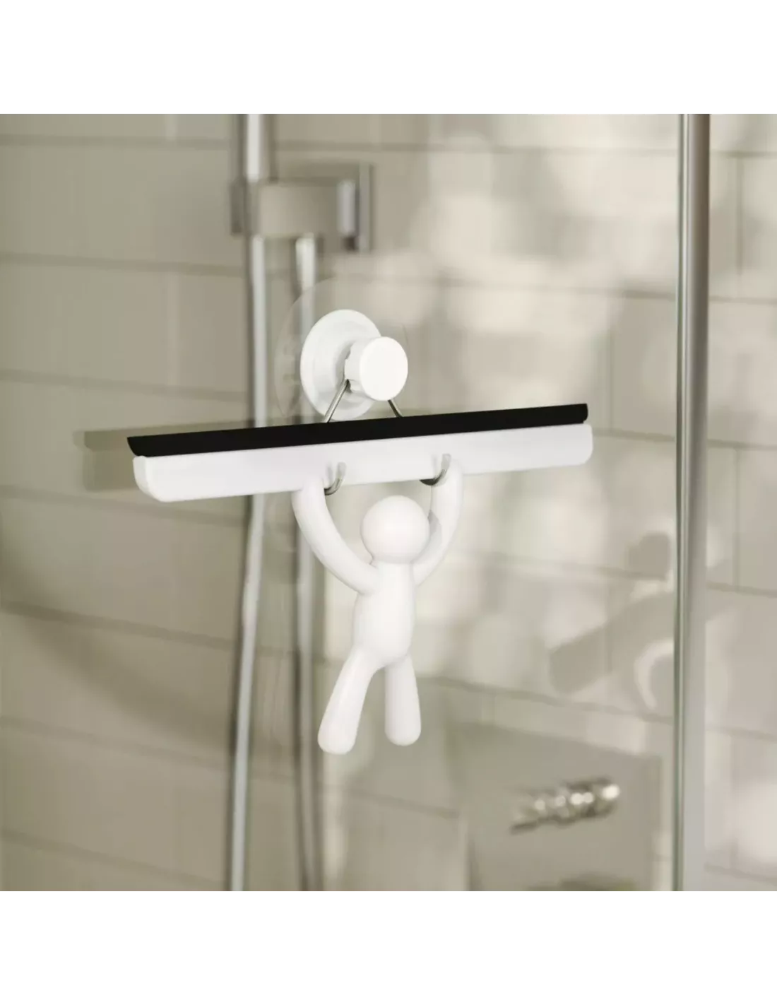 La raclette Buddy Umbra révolutionne le nettoyage salle de bain avec son design figurine amusante en polypropylène blanc résistant, équipée d'une lame silicone flexible qui glisse sans traces sur vitres, miroirs et parois de douche pour éliminer buée, résidus de savon et dépôts efficacement.