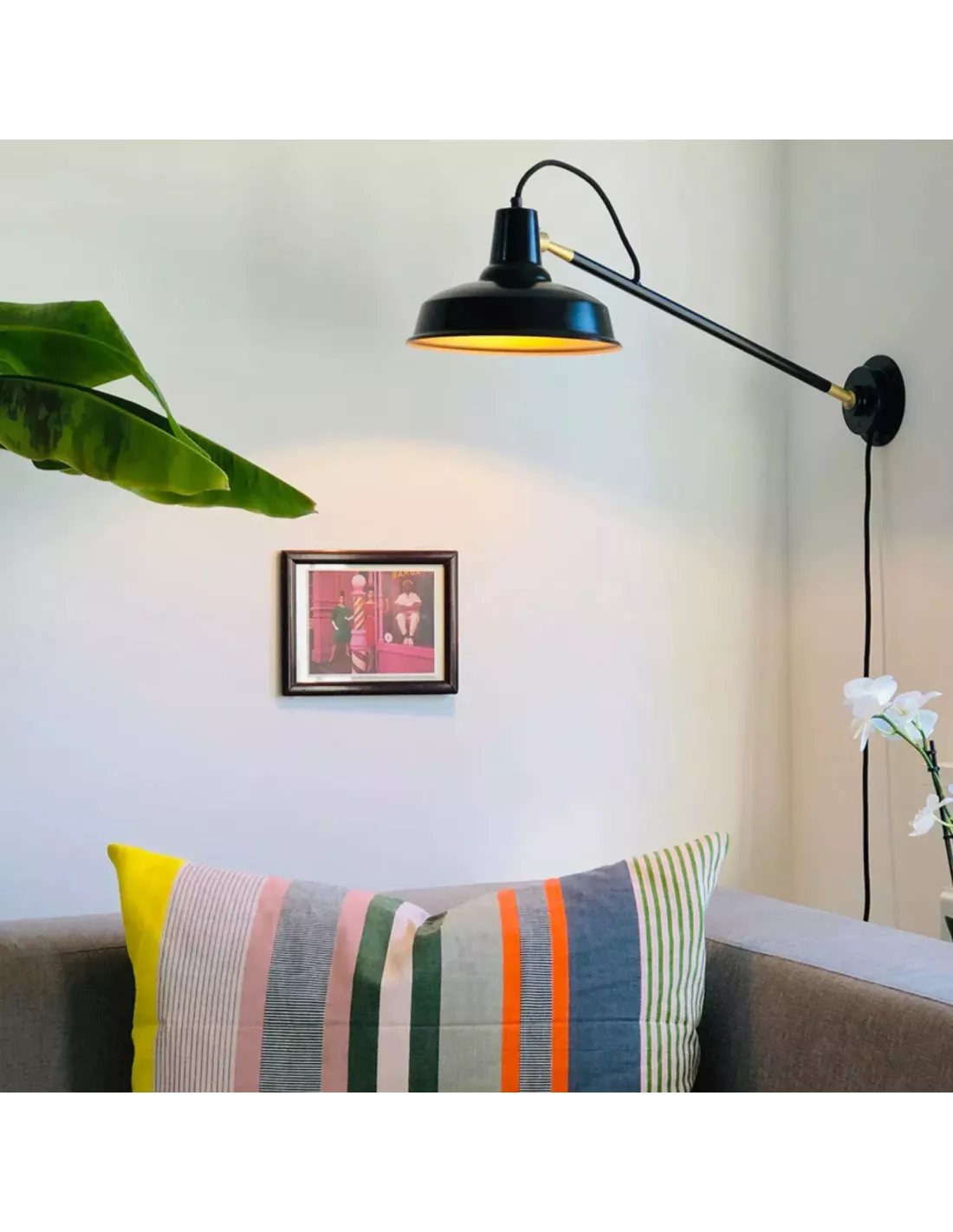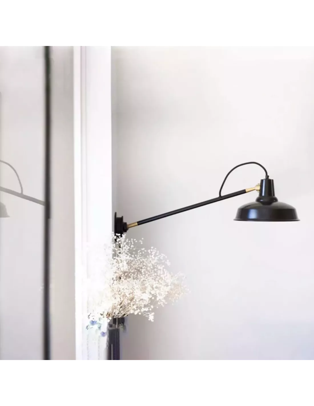 En longueur médium (environ 74 cm de bras) avec un abat‑jour en aluminium d’environ 26 cm de diamètre, elle offre un éclairage à la fois fonctionnel et chaleureux, idéal pour structurer visuellement un salon, une chambre ou un espace professionnel tout en apportant une forte présence graphique au mur.