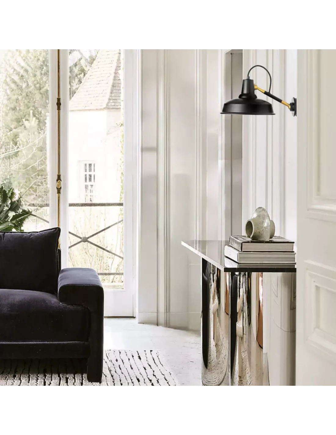 En longueur médium (environ 37 cm de bras) avec un abat‑jour en aluminium d’environ 26 cm de diamètre, elle offre un éclairage à la fois fonctionnel et chaleureux, idéal pour structurer visuellement un salon, une chambre ou un espace professionnel tout en apportant une forte présence graphique au mur.