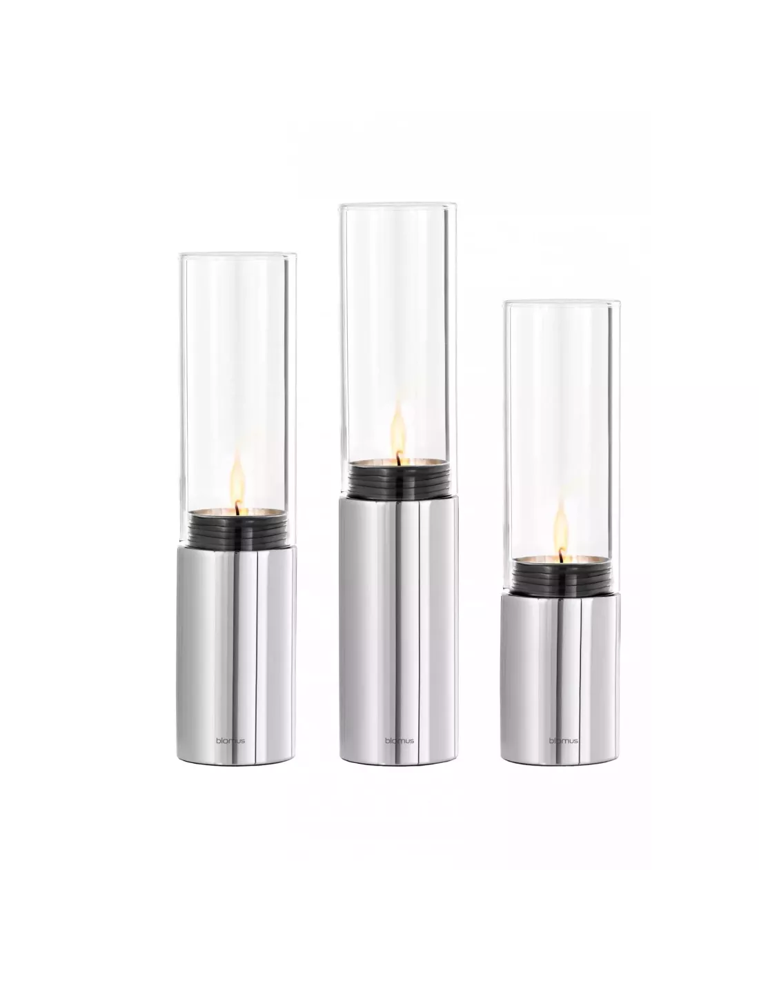 Photophore en inox poli et verre. Convient pour bougie chauffe-plat de 4cm de diamètre.
