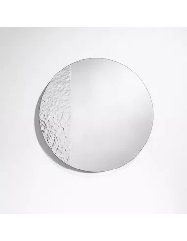 Le miroir est un cercle divisé par une ligne, appelée corde, qui relie deux points du bord du cercle sans passer par son centre. Suivant les proportions mathématiques de Kepler, Roberto a souligné la différence entre les deux parties du cercle. Le plus grand des deux segments est simplement un miroir plat, tandis que le plus petit est fait de verre argenté avec une texture.
