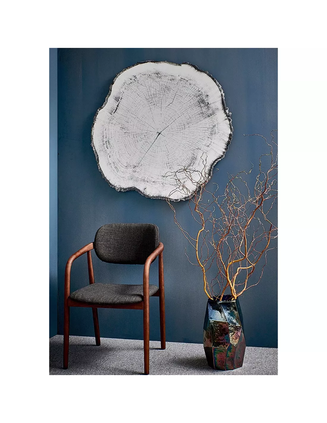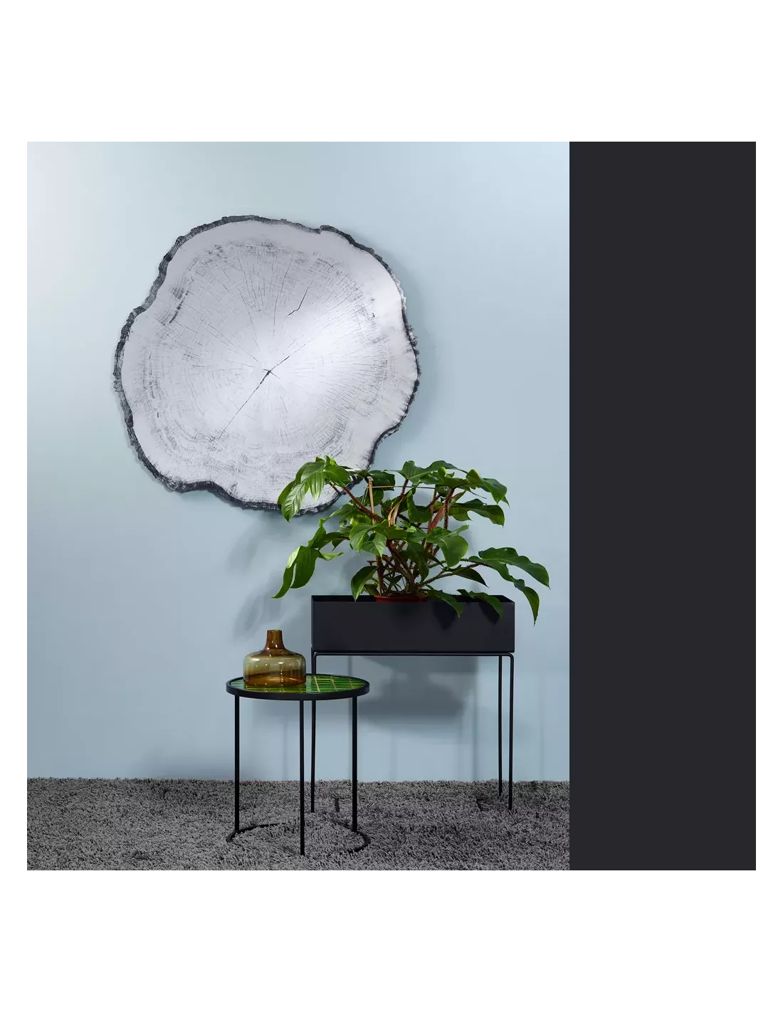 Arbo est un miroir design qui affiche résistance et délicatesse à la fois : un arbre solide sur la surface fragile d'un miroir. Cette forme et cette impression donnent à ce miroir une apparence chaleureuse et conviviale. Sur le mur, il reflète l'environnement avec douceur, entrelacé dans le dessin des cernes de croissance de l'arbre.