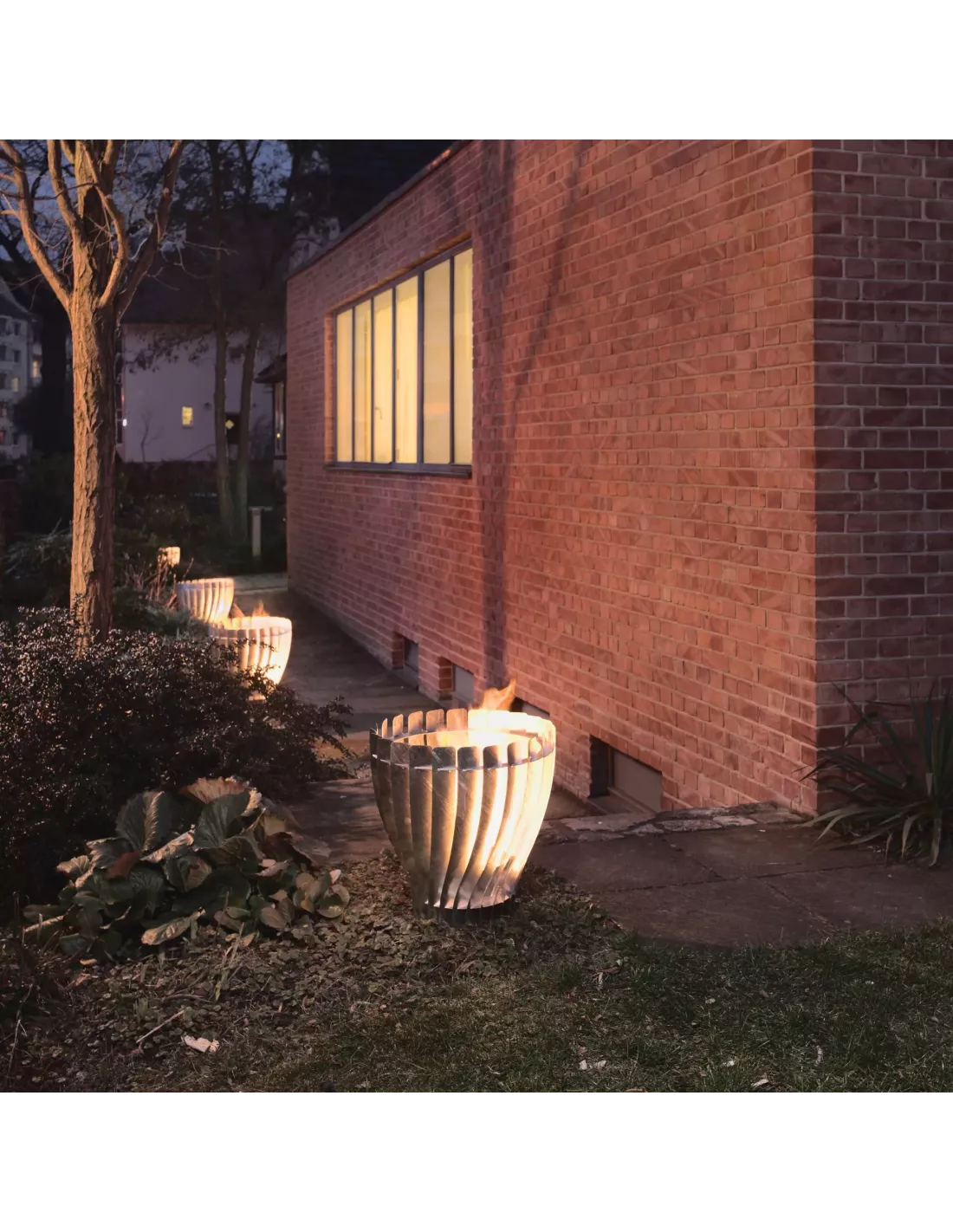 Brasero sur colonne en acier galvanisé. Structure à lamellles haute de 124cm.
