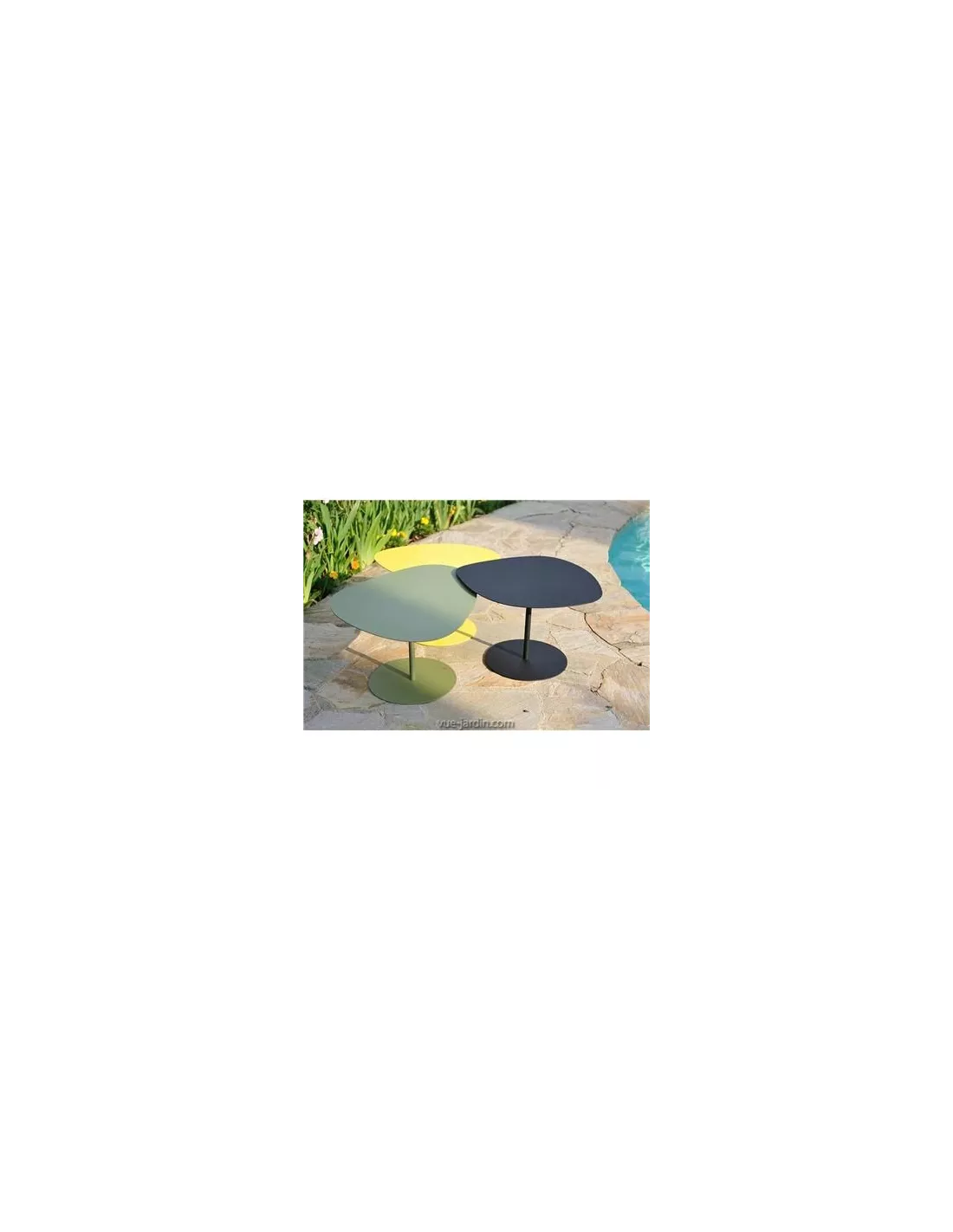 Déclinée en 3 modèles de hauteurs différentes, plus une version XL, il s'agit d'une table basse de jardin design dont le plateau évoque la forme éponyme du minéral aux connotations estivales.