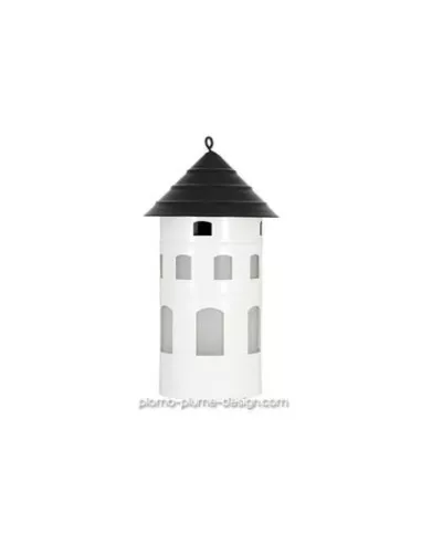 Dessiné comme une tour en acier blanc, il recouvre un cylindre en plastique où vous déposerez un appât (du melon, un autre aliment sucré ou une boisson sucrée). Les guêpes réussiront à rentrer mais pas à en sortir.