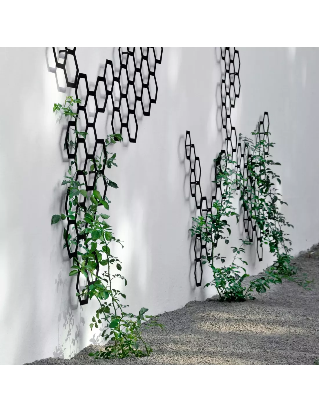 Treillis mural en forme de nid d'abeille. Structure en acier noir. Dimensions : 30 x 50 cm. Ce modèle est décliné en 2 autres tailles à combiner.