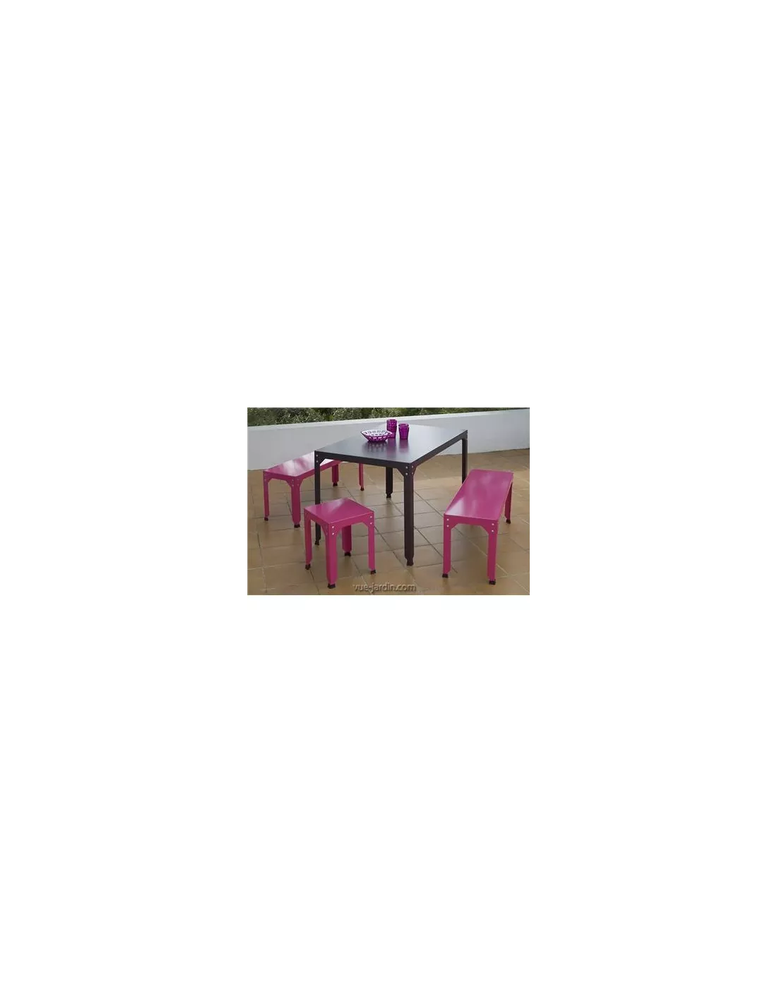 Son style rectiligne avec une découpe originale des pieds et des rivets apparents révèle l'inspiration industrielle de la collection éponyme. Matière Grise, spécialiste français du mobilier de jardin design, a en effet voulu retranscrire l'esprit loft dans cette gamme entièrement réalisée en acier galvanisé, matériau qui lui confère une excellente résistance aux intempéries.