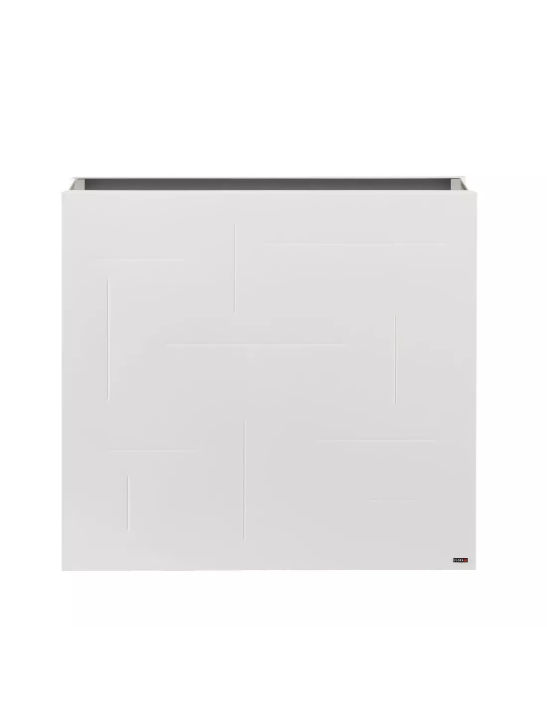 Le modèle Tracks 110 est une jardinière en acier Blanc haute de 75 cm et mesurant 82 x 29 cm à sa base.