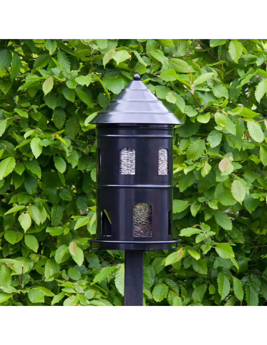 Avec cette mangeoire pour oiseaux géante de couleur Noire , vous pourrez proposer beaucoup de nourriture pendant vos longues absences car celle-ci permet de contenir 6 litres de graines dans son récipient amovible. Les graines sont bien protégées de l'humidité et des souillures.