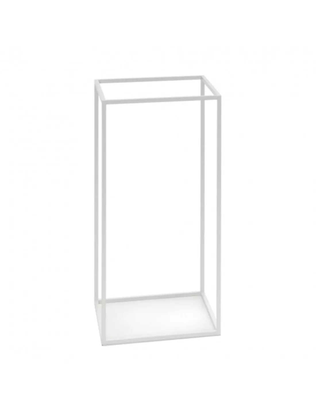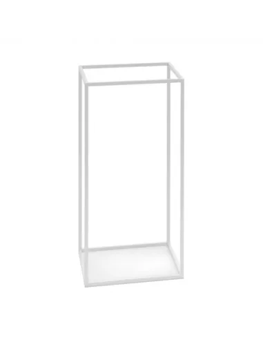 Porte parapluie cubique filiforme en acier poudré blanc réversible en guéridon.