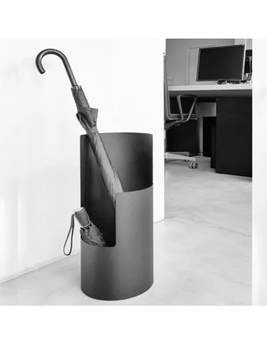 Son design avant-gardiste joue avec les hauteurs pour accueillir aussi bien les petits parapluies de poche que les modèles longue taille.