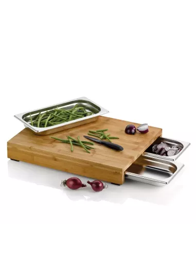 Planche à découper avec trois bacs de récupération en inox, Modèle Kenina de la marque KELA