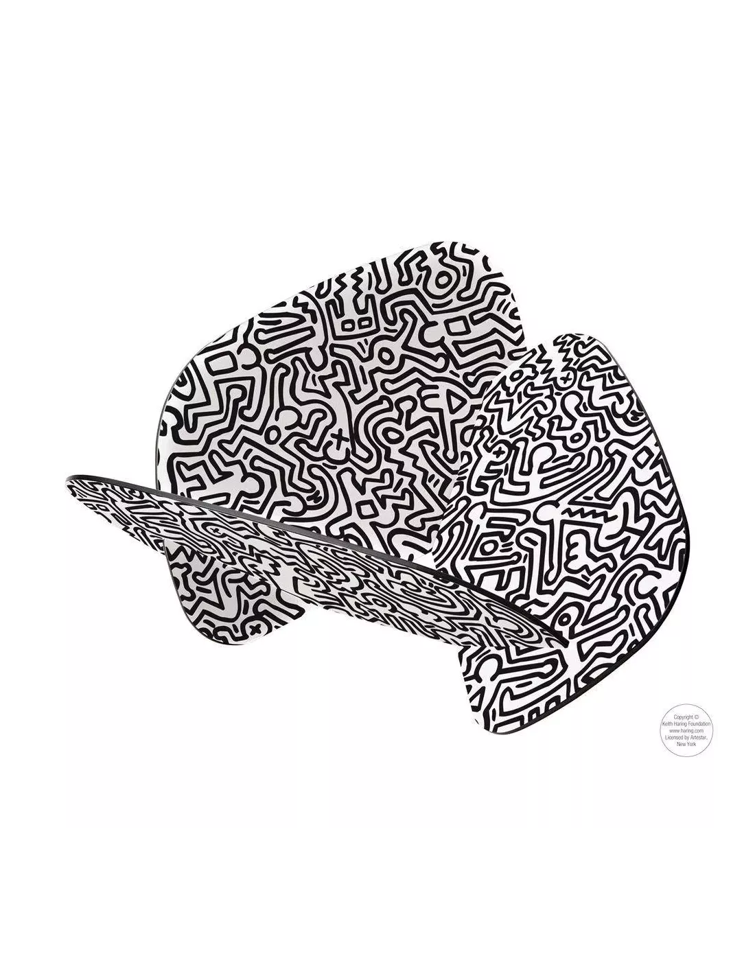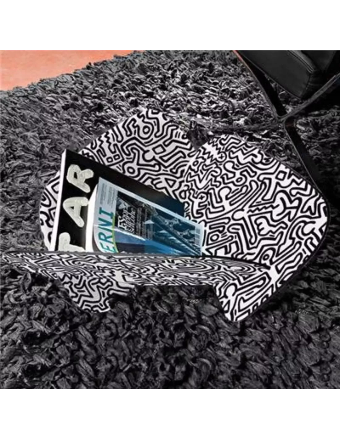 Le design de ce porte revue s'inspire d'une corbeille, prête à recevoir avec générosité vos différents magazines. Il vous suffit d'imbriquer les unes dans les autres les trois planches en HPL laminé ornées d'un sympathique motif du célèbre Keith Haring, et la magie opère.