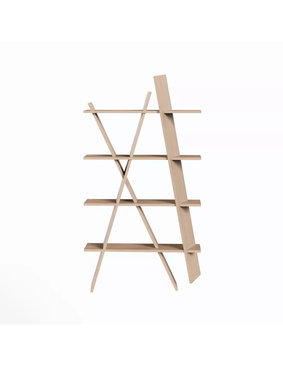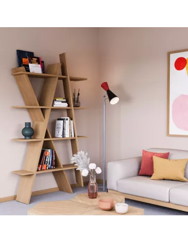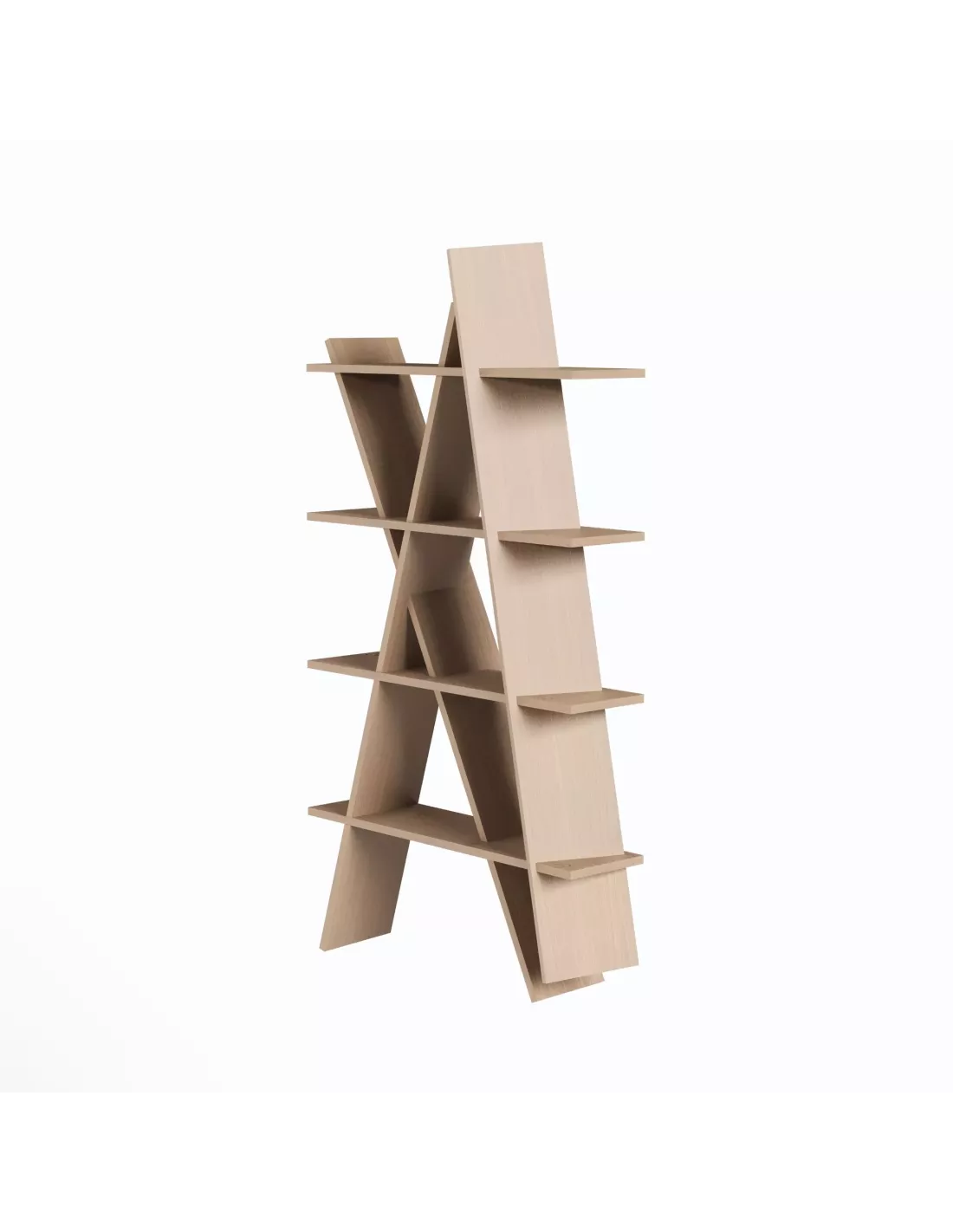 Étagère avec structure en MDF plaqué bois naturel, chêne ou noyer. S'assemble sans outils comme un jeu en bois grâce à la notice sculptée.
