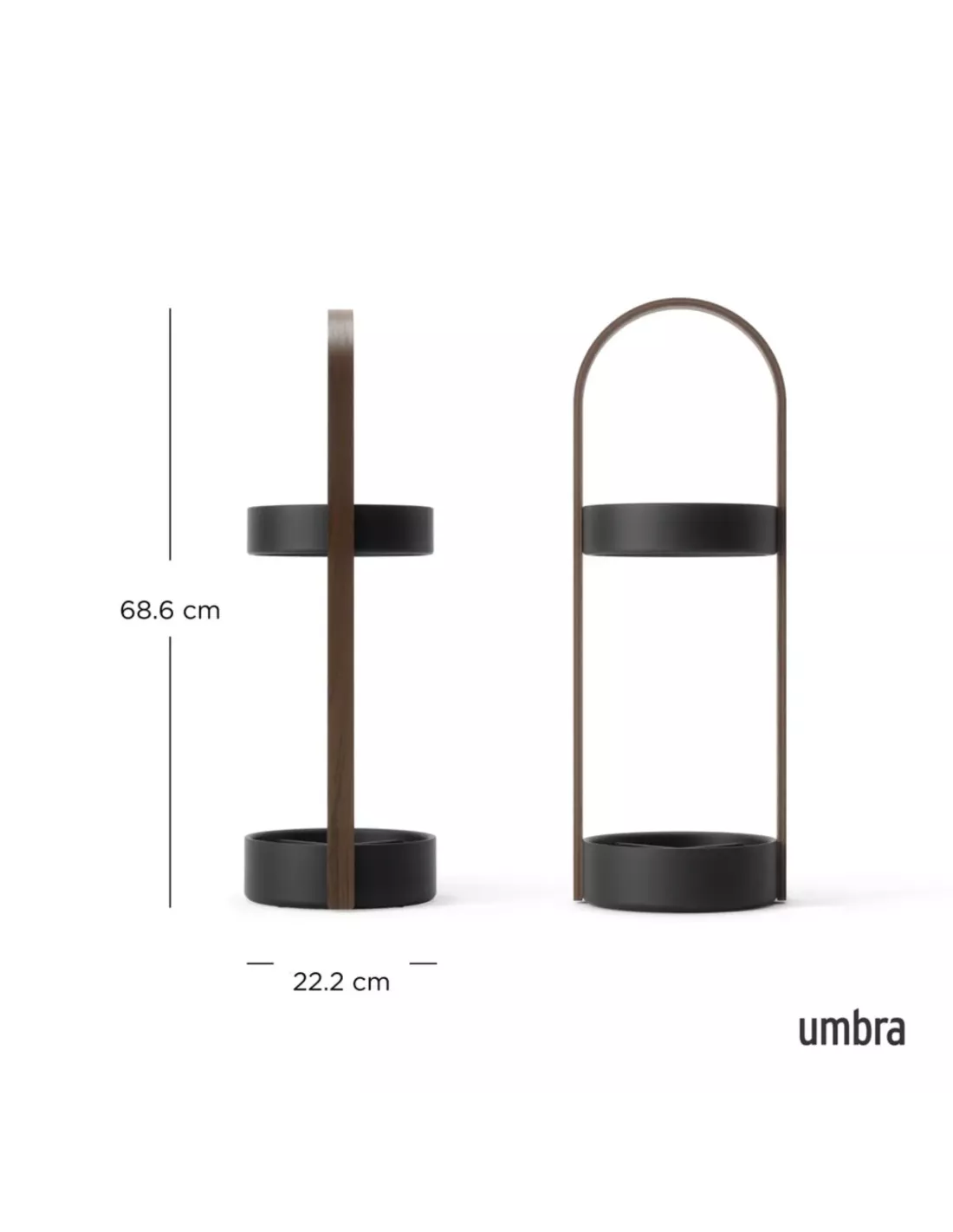 Alliez élégance, praticité et durabilité avec le porte-parapluies Bellwood Umbra. Son design moderne associe une poignée incurvée en placage de bois naturel, un anneau supérieur en acier et une base ronde en résine imperméable, conçue pour résister à l’eau et à la rouille.